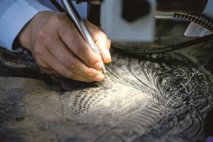 修复化石需要耐心和细心