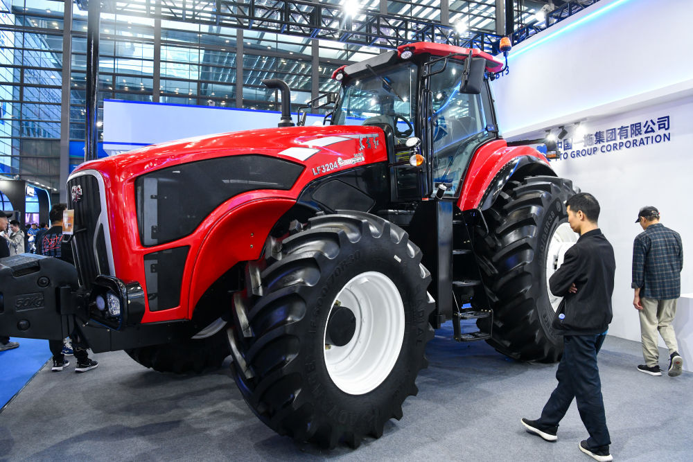 2023年11月,观众在第二十五届高交会上了解东方红轮式拖拉机。新华社记者 梁旭 摄