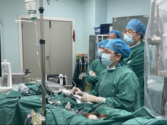 鄢华院长、熊岗主任带领心内科团队为周爹爹实施手术