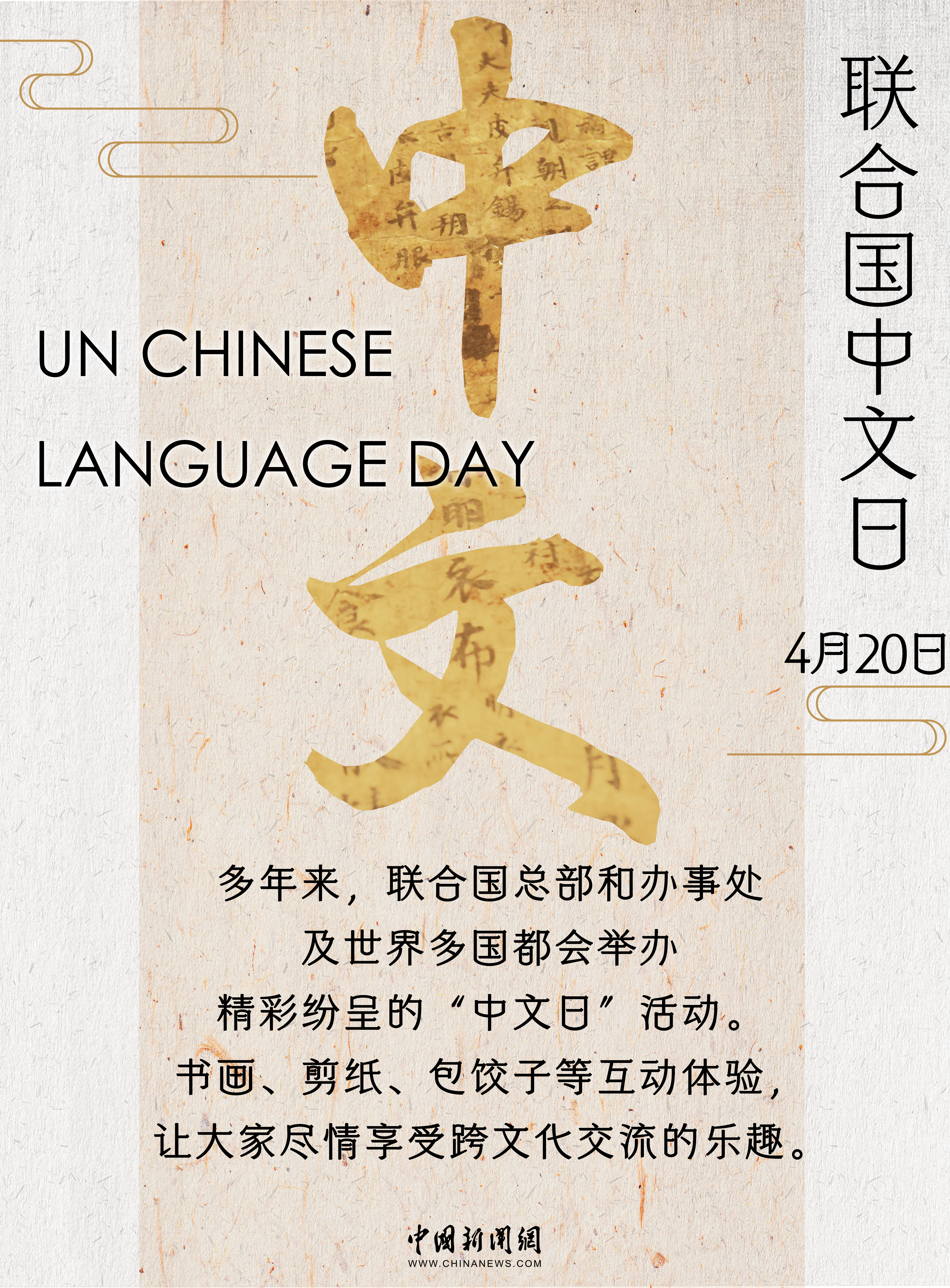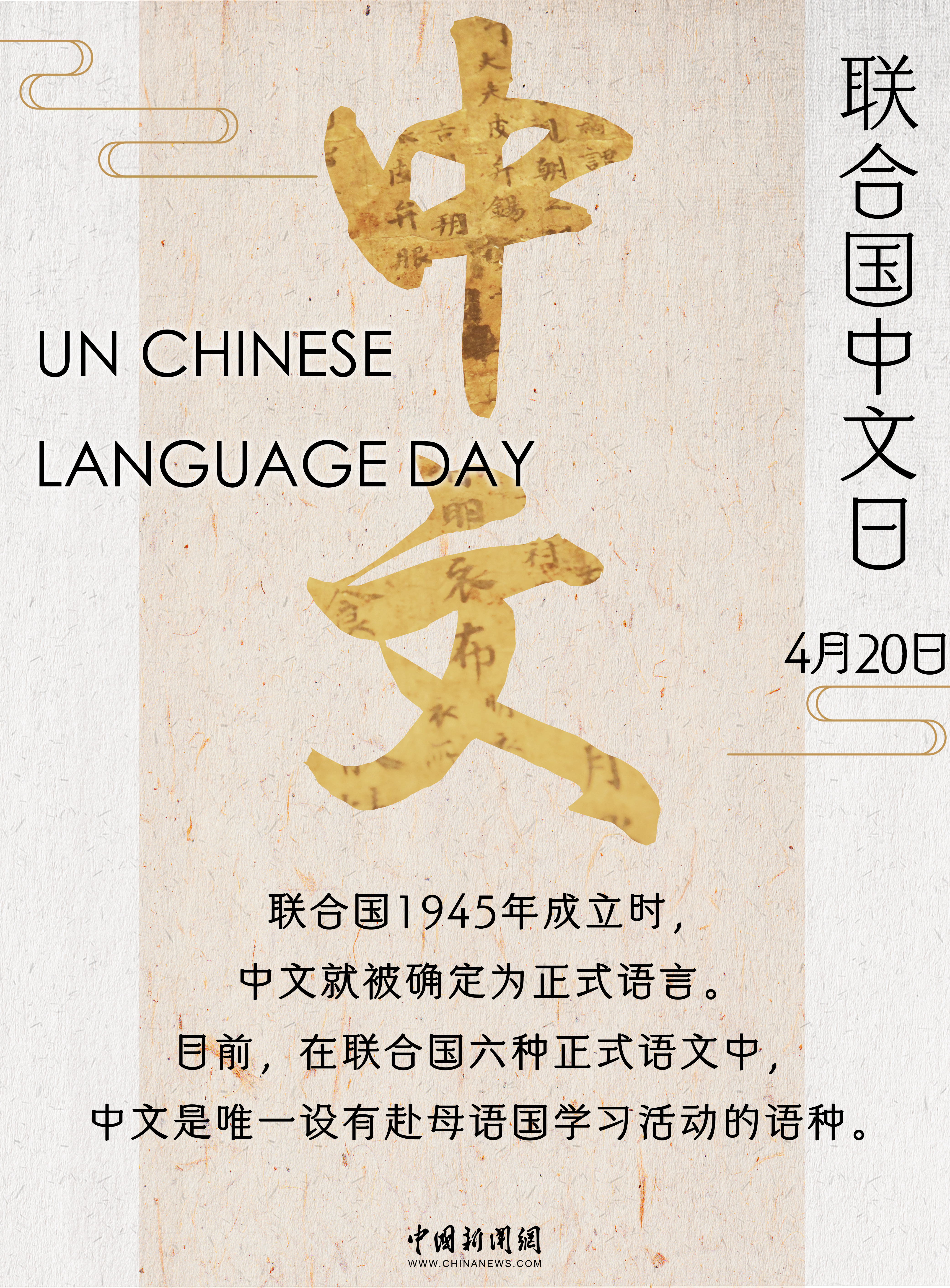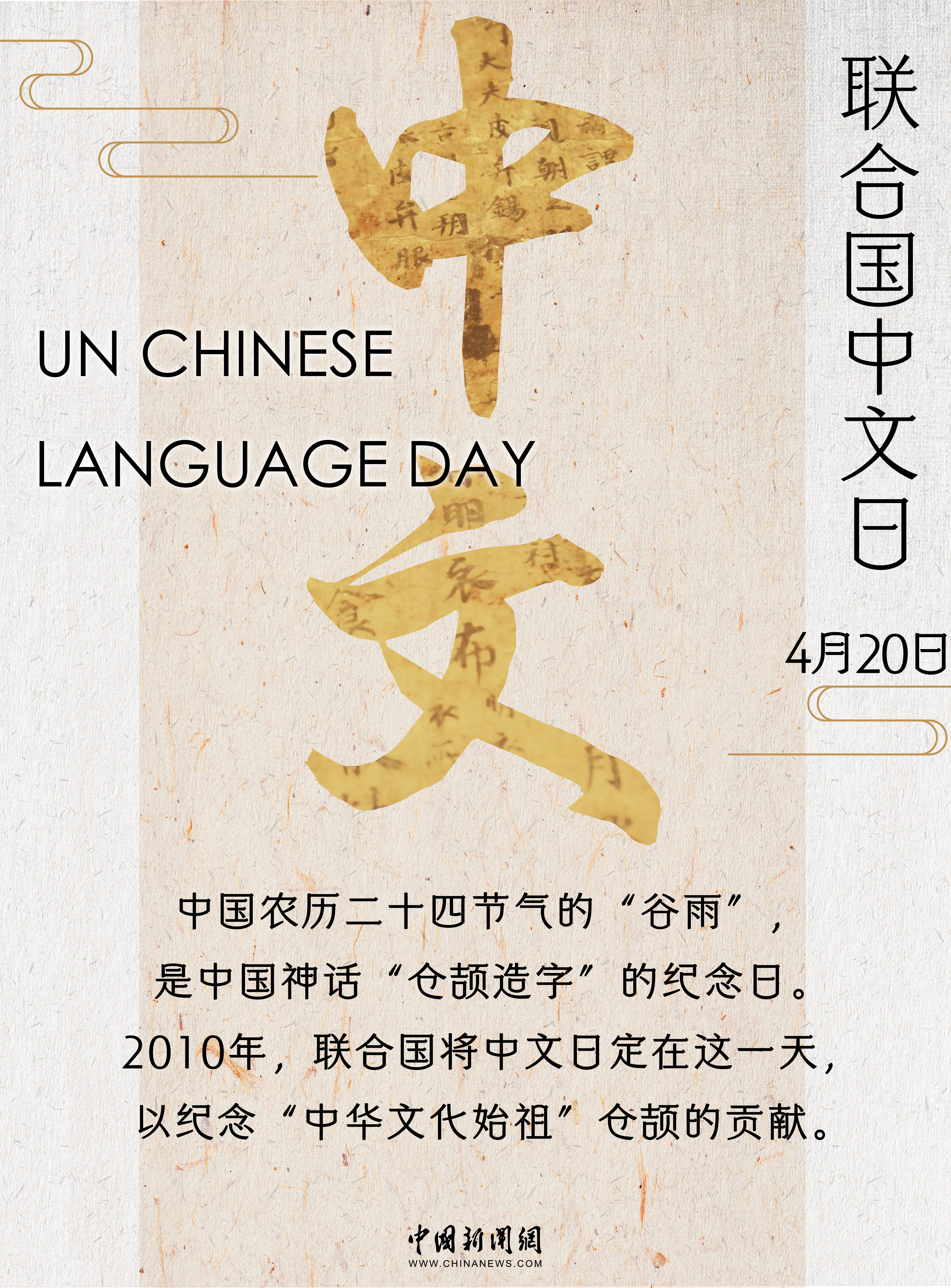 2010年,联合国将中国传统二十四节气之一的“谷雨”定为联合国中文日,围绕其举办的庆祝活动成为联合国及世界各国民众学习中文、了解中国的重要窗口。
