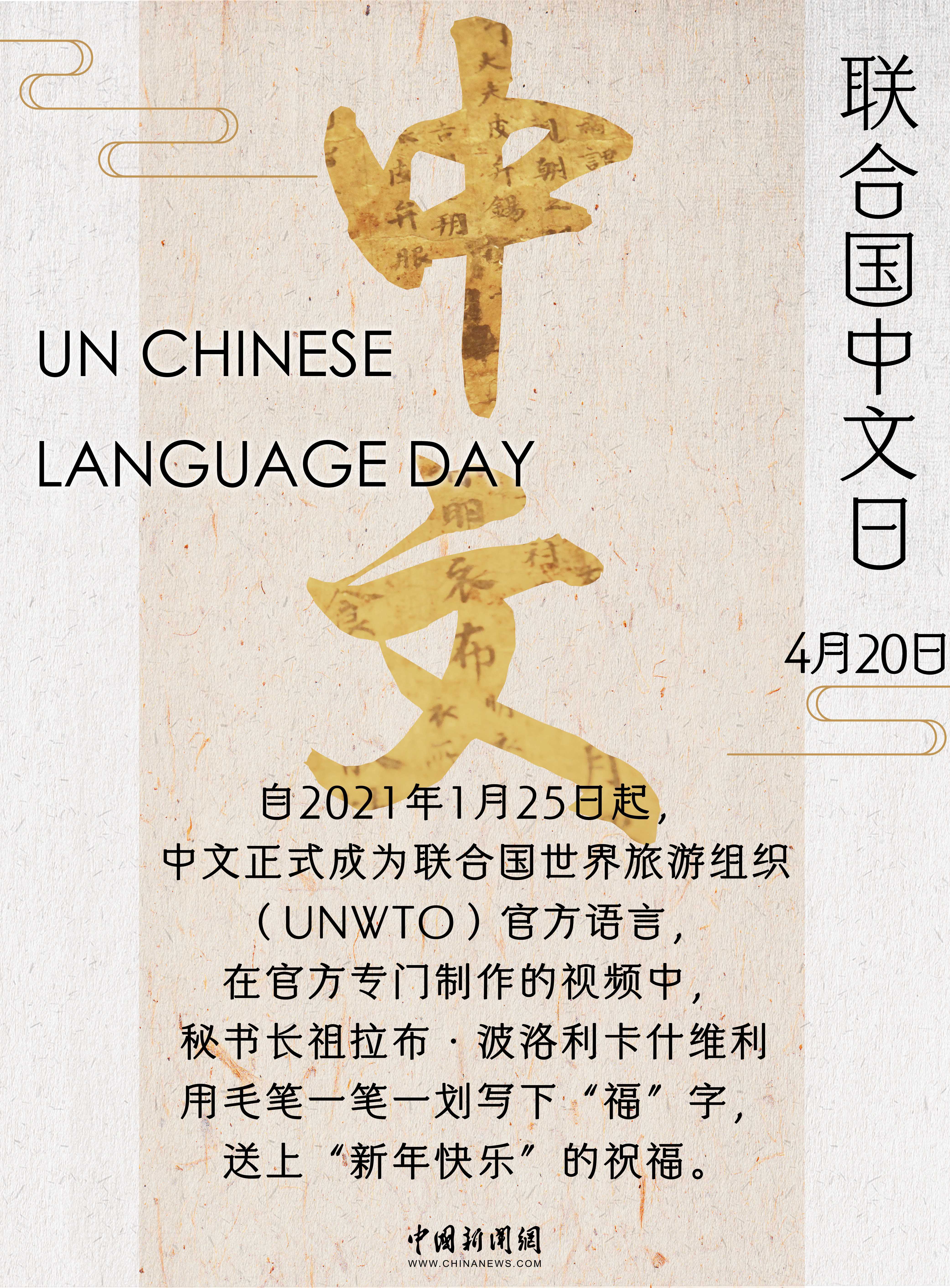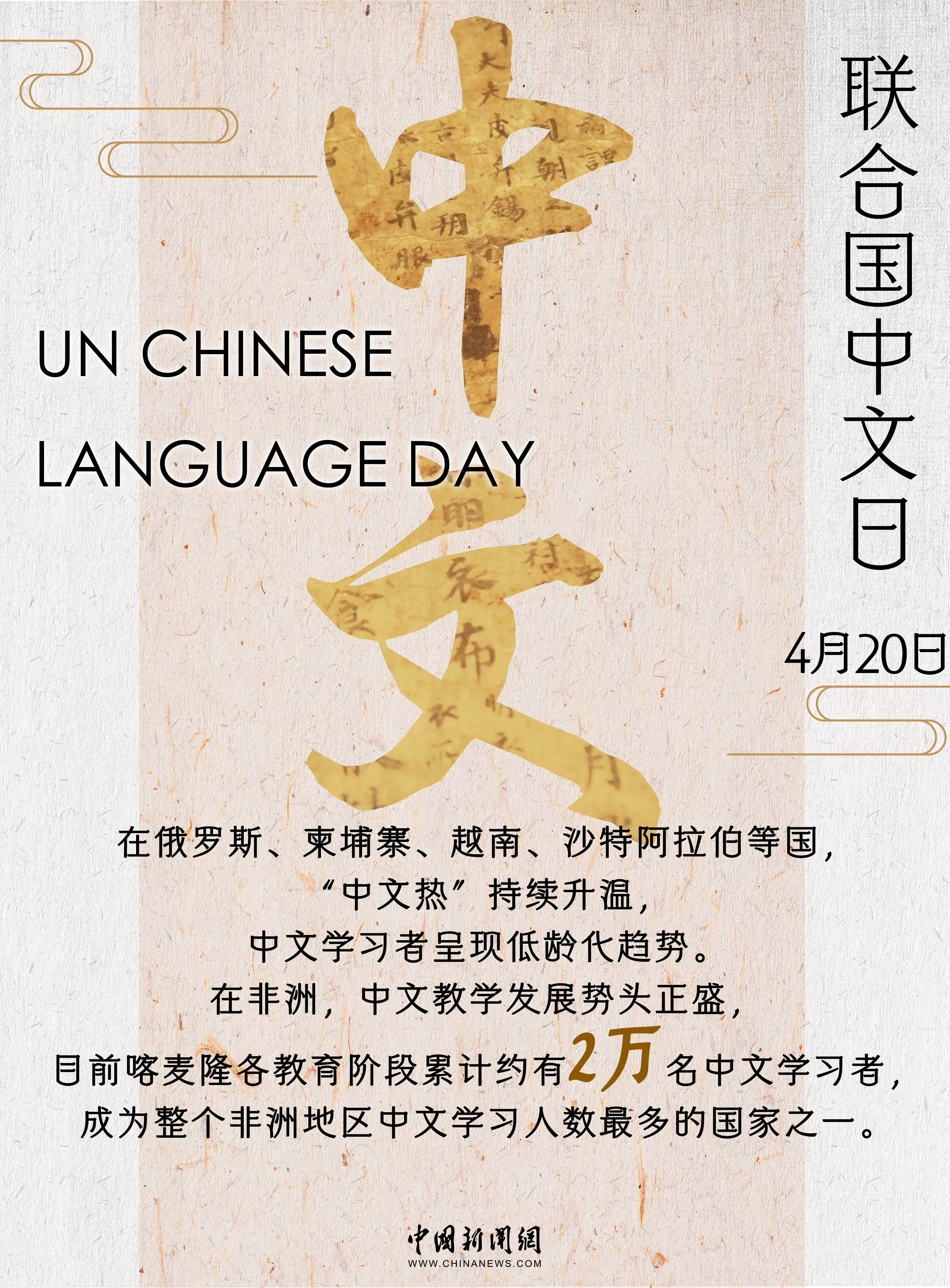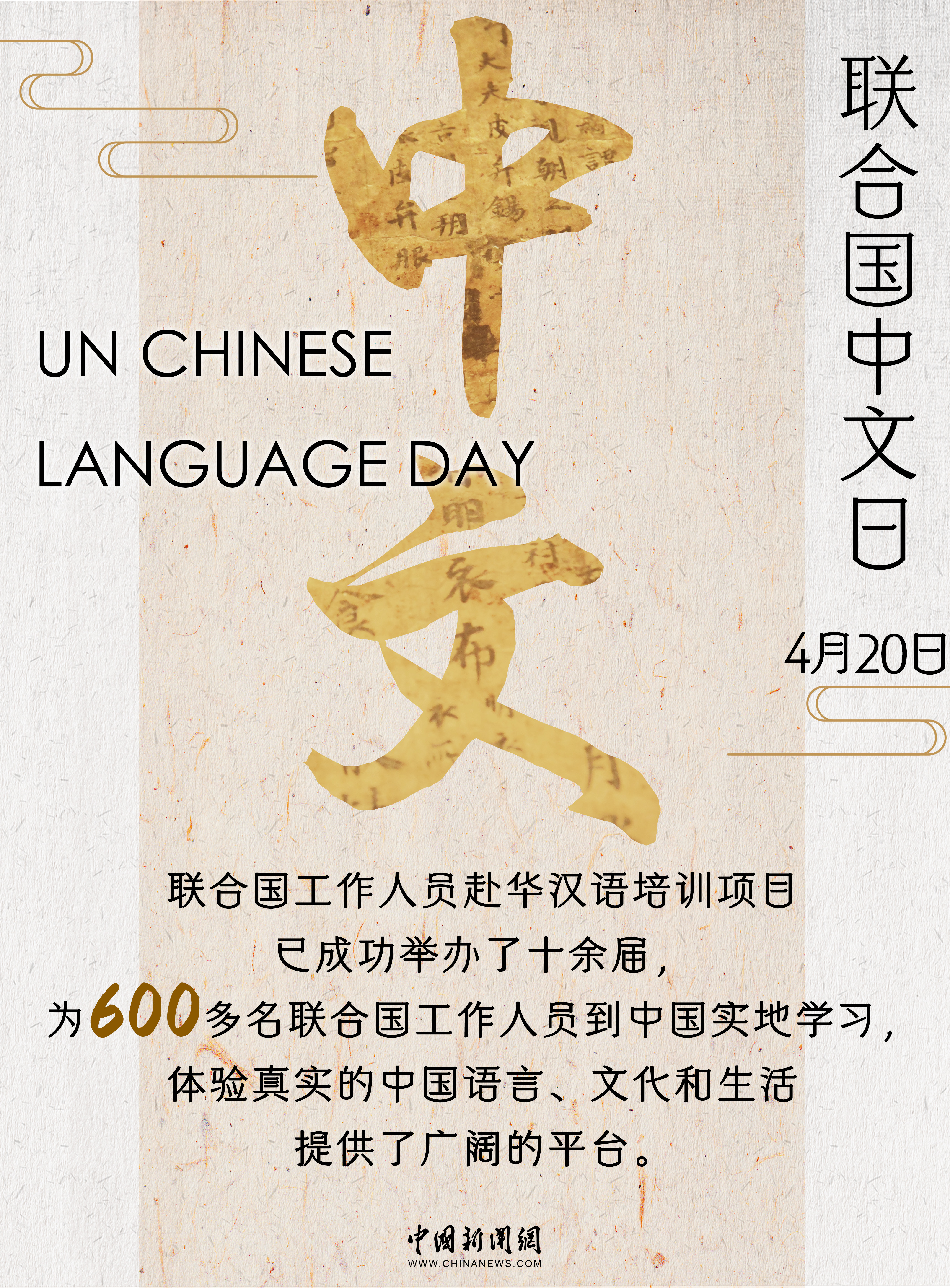 2010年,联合国将中国传统二十四节气之一的“谷雨”定为联合国中文日,围绕其举办的庆祝活动成为联合国及世界各国民众学习中文、了解中国的重要窗口。