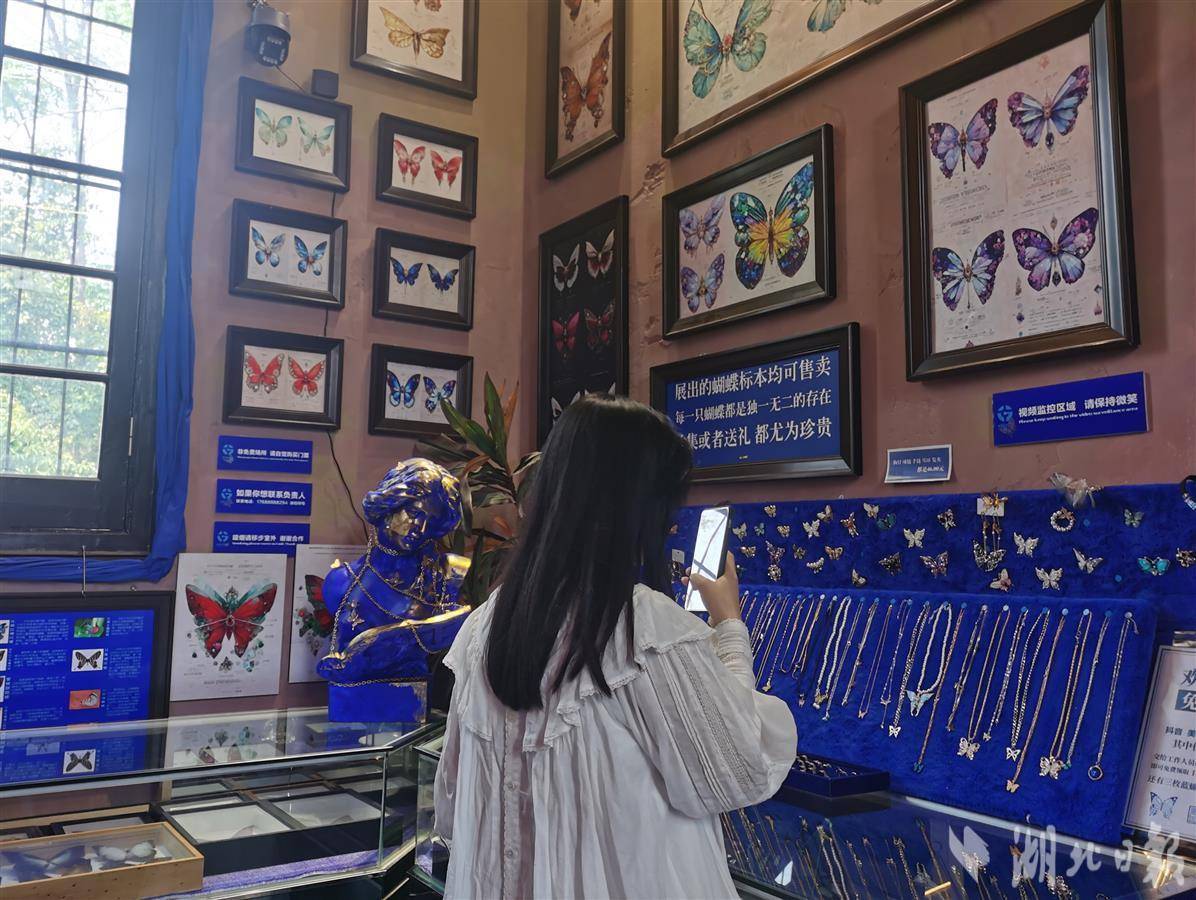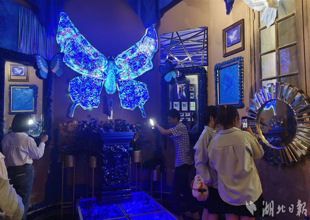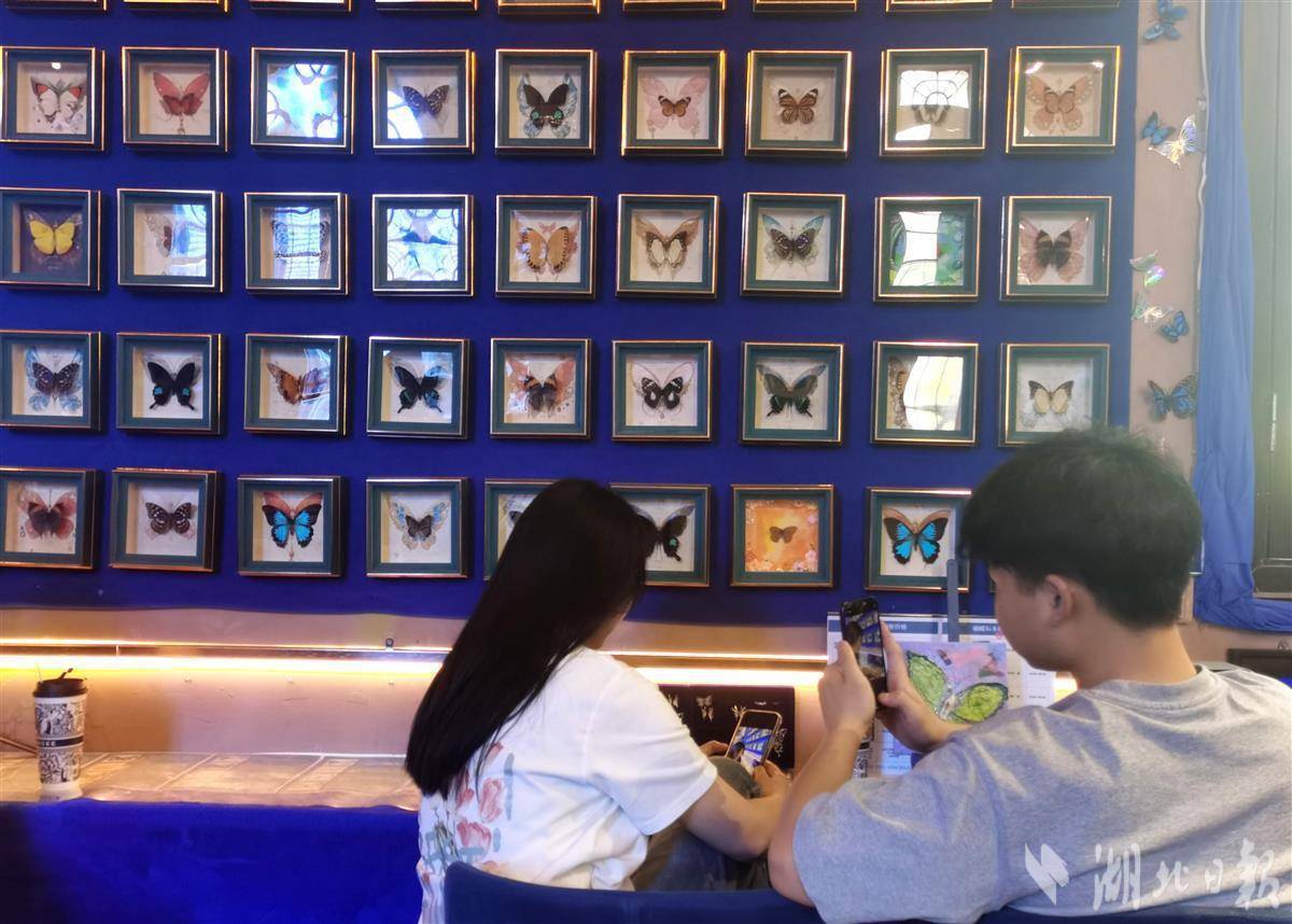 湖北日报讯(记者农新瑜、通讯员筱露)品种多样、五彩斑斓的200多件蝴蝶标本,引来一批批参观者流连欣赏、拍照打卡。近日,位于武汉市武昌区昙华林的一家蓝蝴蝶主题艺术馆,成为不少游客慕名前来的网红景点。