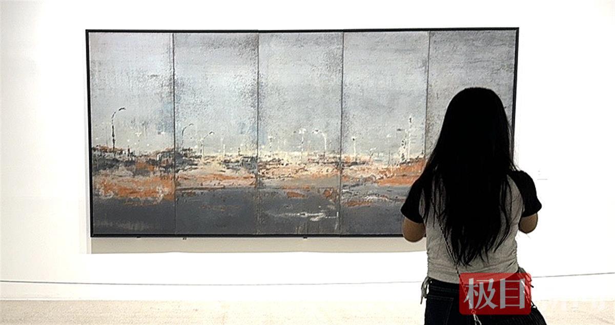 在《海市蜃楼》系列前,极目新闻记者频频遇到观众们在小声讨论:这是街道还是楼房?这是电线杆还是树?但是,具体是什么并不重要,重要的是画面中流动的梦幻感,能牢牢吸引住人们的视线。
