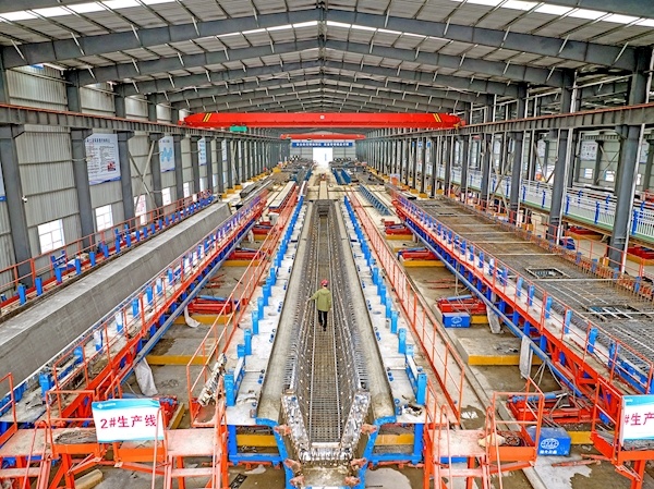箱梁在智慧梁场内批量、自动化生产