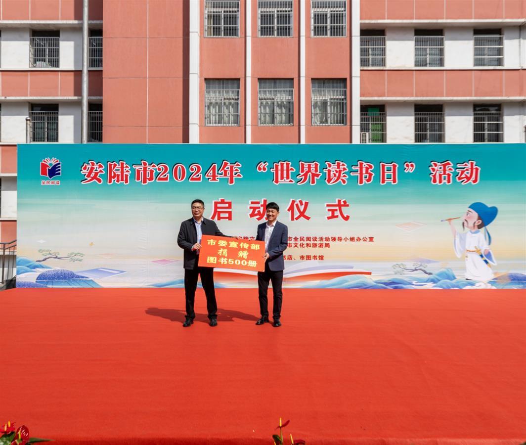 安陆市委宣传部、安陆市邮政公司、湖北安东印务分别向学校捐赠了优质图书与校园课本。