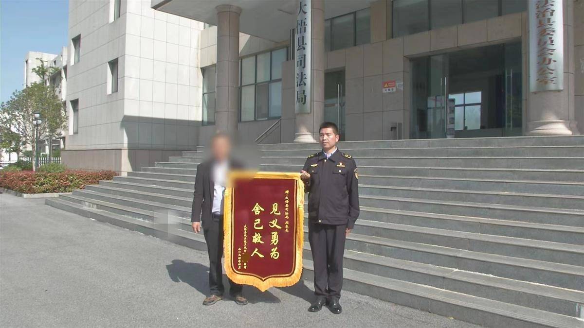 湖北日报讯(记者张双双、通讯员易荣波、李怡)4月18日,罗师傅订做了两面写有“见义勇为,舍己救人”的锦旗,一面送给大悟县司法局夏店司法所干部、退役军人周亮亮,一面送给城关镇七里冲热心群众付翔,感谢二人的救命之恩。