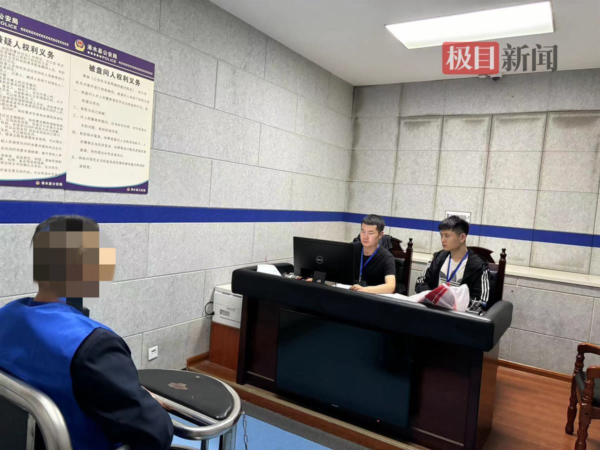 民警对犯罪嫌疑人洪某某进行审讯