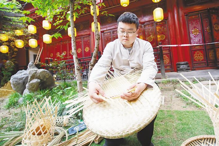 4月22日,在武汉园博园汉口里,央视《非遗里的中国》湖北篇录制现场,湖北省级非遗“章水泉竹艺”亮相。(湖北日报全媒记者 何宇欣 摄)