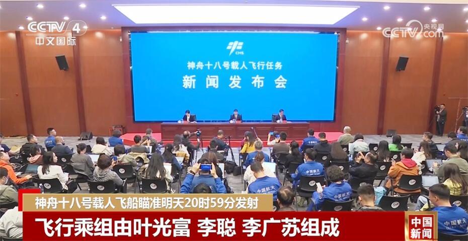 神舟十八号飞行乘组由航天员叶光富、李聪、李广苏组成,叶光富担任指令长。航天员叶光富执行过神舟十三号载人飞行任务,李聪和李广苏均为中国第三批航天员,都是首次执行飞行任务。4月24日上午,三名航天员在酒泉卫星发射中心问天阁与中外媒体记者见面。