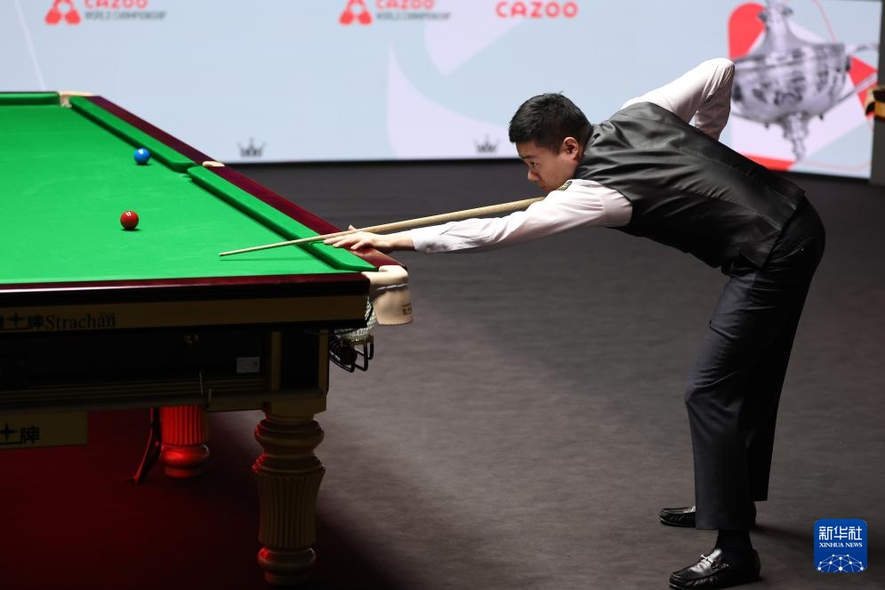 4月24日,丁俊晖在比赛中。新华社发(翟政摄)