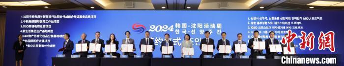 图为中韩合作重点项目在开幕式现场签约。沈阳市商务局 供图