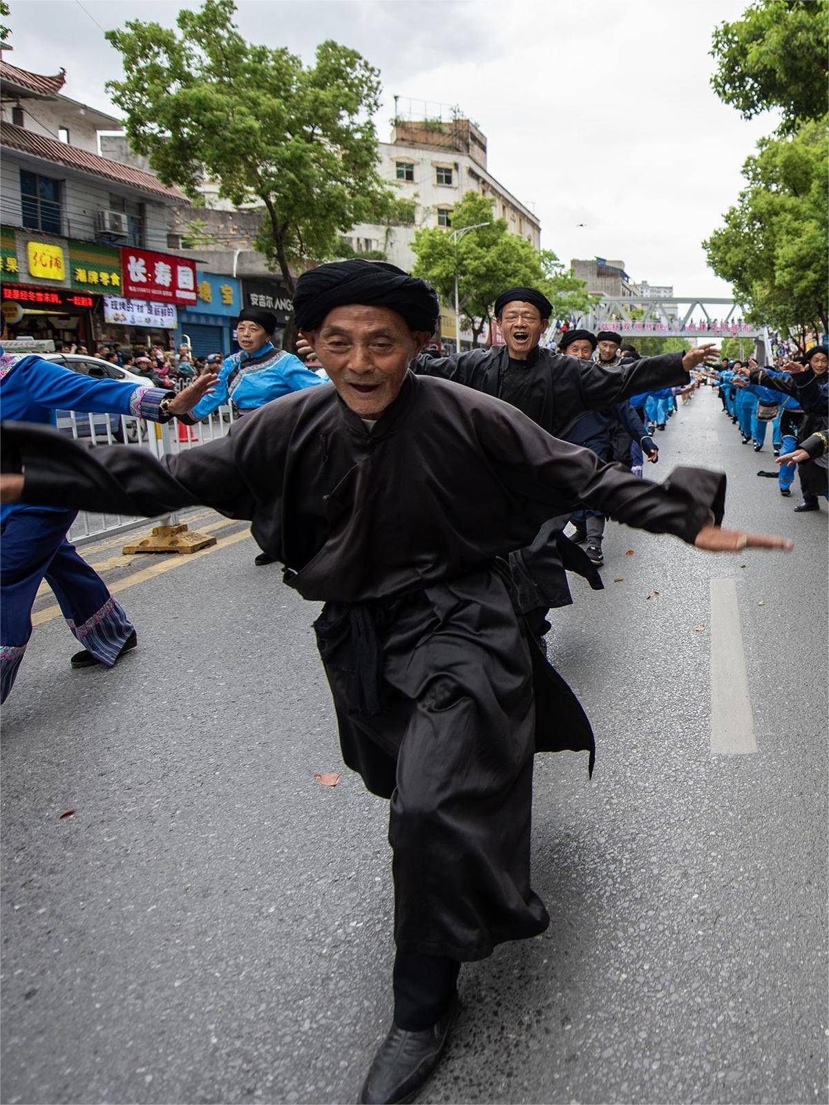 去年,来凤县举办第三届土家摆手舞文化和旅游节,彭南清带领26名村民参加,他们穿着传统黑色土家服饰,摆动双手、迈开脚步,将单摆、拜年、撒种等舞蹈动作展现得淋漓尽致。