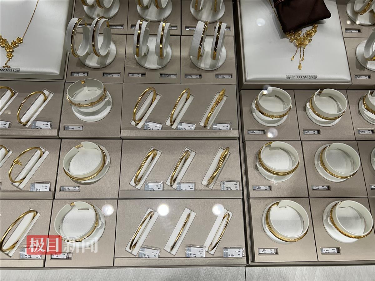 她告诉极目新闻记者,身边不少朋友都在投资黄金,这段时间有人入手、也有人出手,“最近金价是涨了蛮多,听说这两天又降了就来看看。”在严女士看来,黄金手镯精美大气,适合婆婆佩戴,同时还能保值。