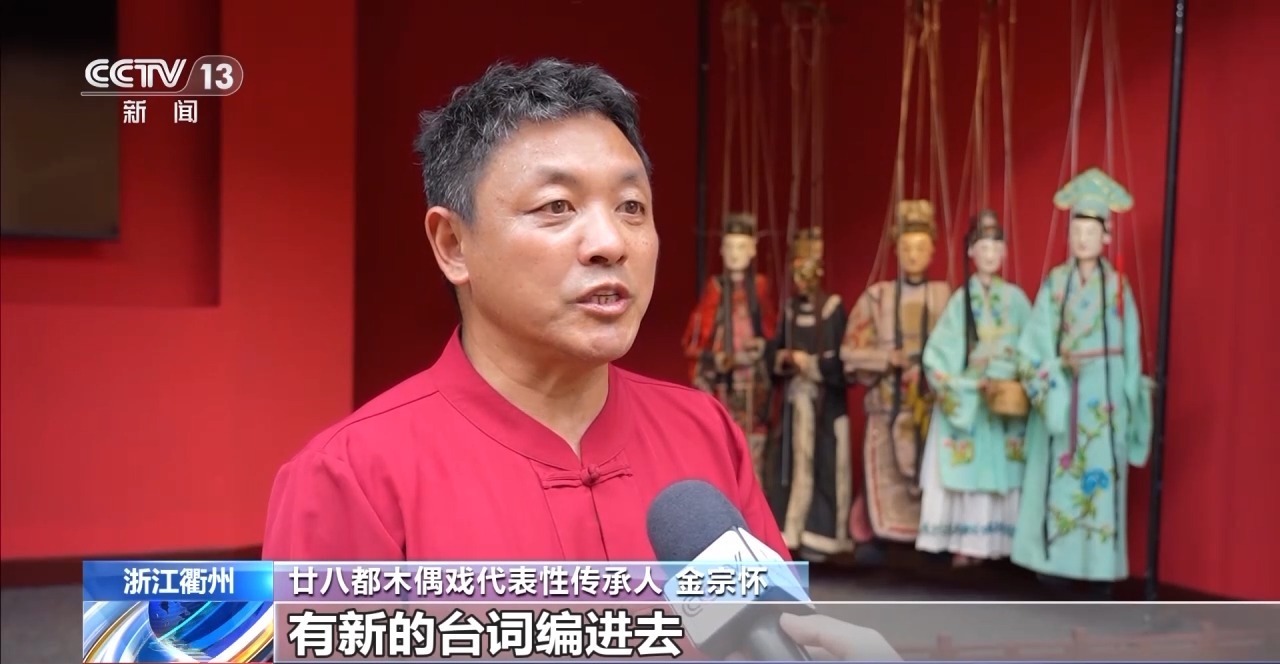 廿八都木偶戏代表性传承人 金宗怀:用古老的唱腔,有新的台词编进去,把上学的情形唱出来,同学们喜悦的心情唱出来,(孩子们)就更加喜欢木偶戏,得到很好的传承效果。