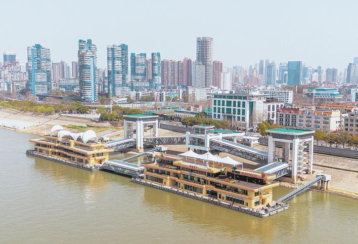 4月26日,“两江晴川”号游轮响亮的汽笛声划破江面,中华路游轮母港(红巷旅游码头)正式开启试运营。其由原红巷码头和原中华路码头升级改造而来,新建有6个泊位,可停靠5000吨量级游轮,设计年通过能力475万人次。楚天都市报极目新闻记者邬晓芳 吕锐 通讯员魏清 王佩正 曾鑫喵摄影报道