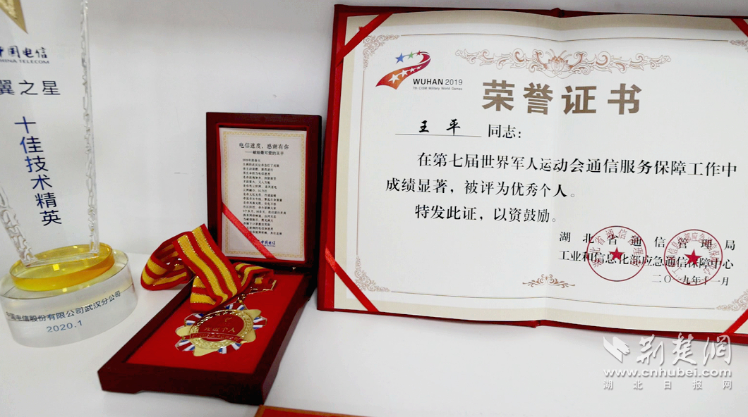 王平同志曾先后荣获武汉五一劳动奖章、湖北省技术能手、湖北省杰出青年岗位能手、湖北省通管局第七届世界军人运动会通信服务保障优秀个人、湖北信息通信业抗击新一轮新冠肺炎疫情突出贡献个人、中国电信武汉分公司天翼之星等荣誉。