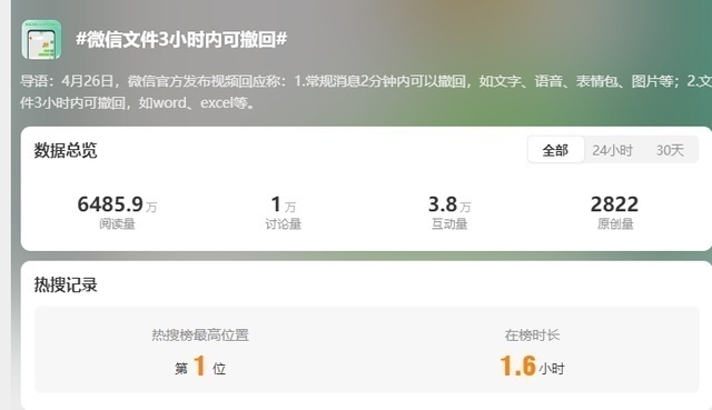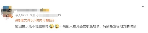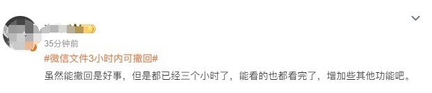 今日,#微信文件3小时内可撤回#冲上微博热一。
