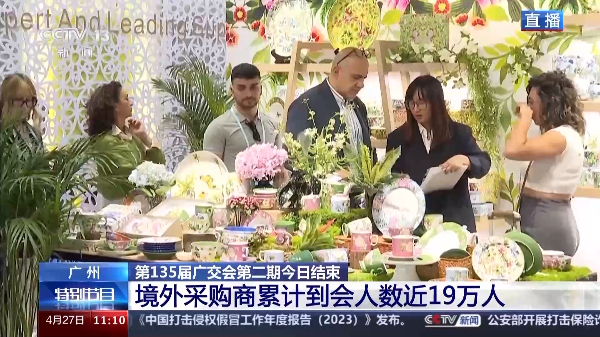 总台记者 赵菁:广交会二期已经进入尾声,相比第一期的“先进制造”,第二期的展览内容更贴近我们的日常生活。在现场,我们看到了含“绿”量高、中国传统文化元素足、创新设计强的特点,也感受到了广交会这个平台带来的万商云集的热闹。