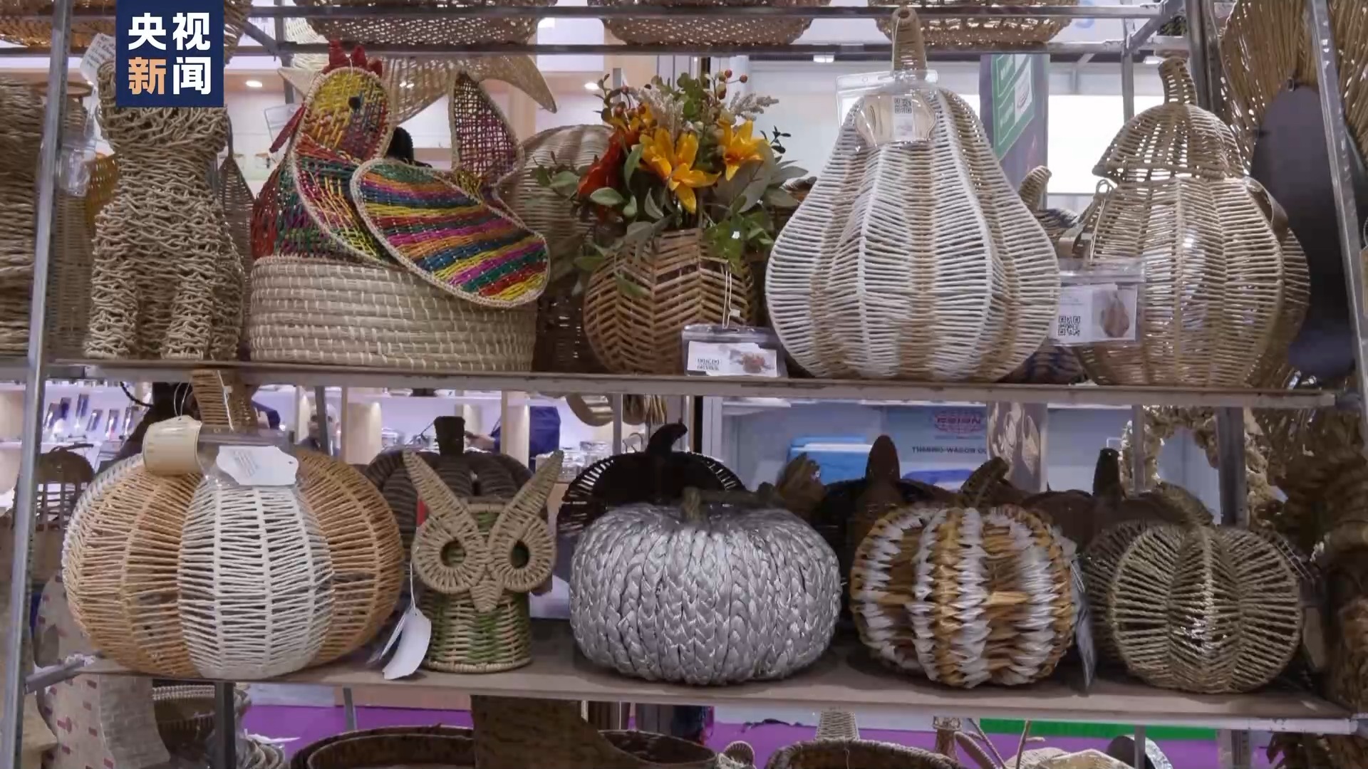 在这次广交会二期的进口展区中,不仅能看到很多厨具、瓷器等家居用品,一只手工编织的长颈鹿和一棵编织的椰子树引起记者注意。它们出自一家专门制作手工艺品的越南企业。