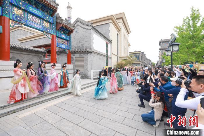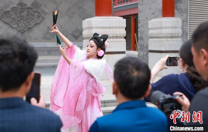 汉服舞蹈表演吸引游客打卡拍照。记者 贾天勇 摄