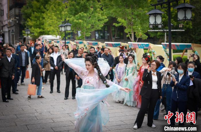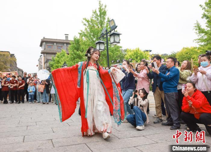汉服舞蹈表演吸引游客。记者 贾天勇 摄