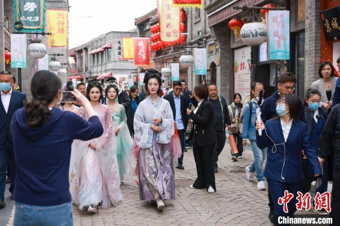 汉服焕装巡游表演吸引游客。记者 贾天勇 摄