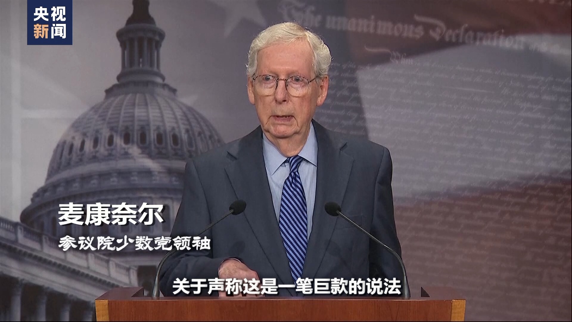 参议院少数党领袖 麦康奈尔:关于声称这是一笔巨款的说法,我知道它看起来似乎是不少,但要把这600亿放在整体中来看,它是占GDP的0.2%,而我们的总体国防预算是(占GDP)3%。