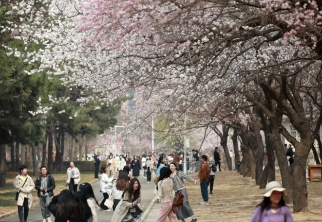 在吉林省长春市长春公园内,杏花、李花、梨花等正渐次开放,抖擞着春日里的勃勃生机,众多市民游客纷纷在此赏花踏青,用“City Walk”丈量着久违的春天。