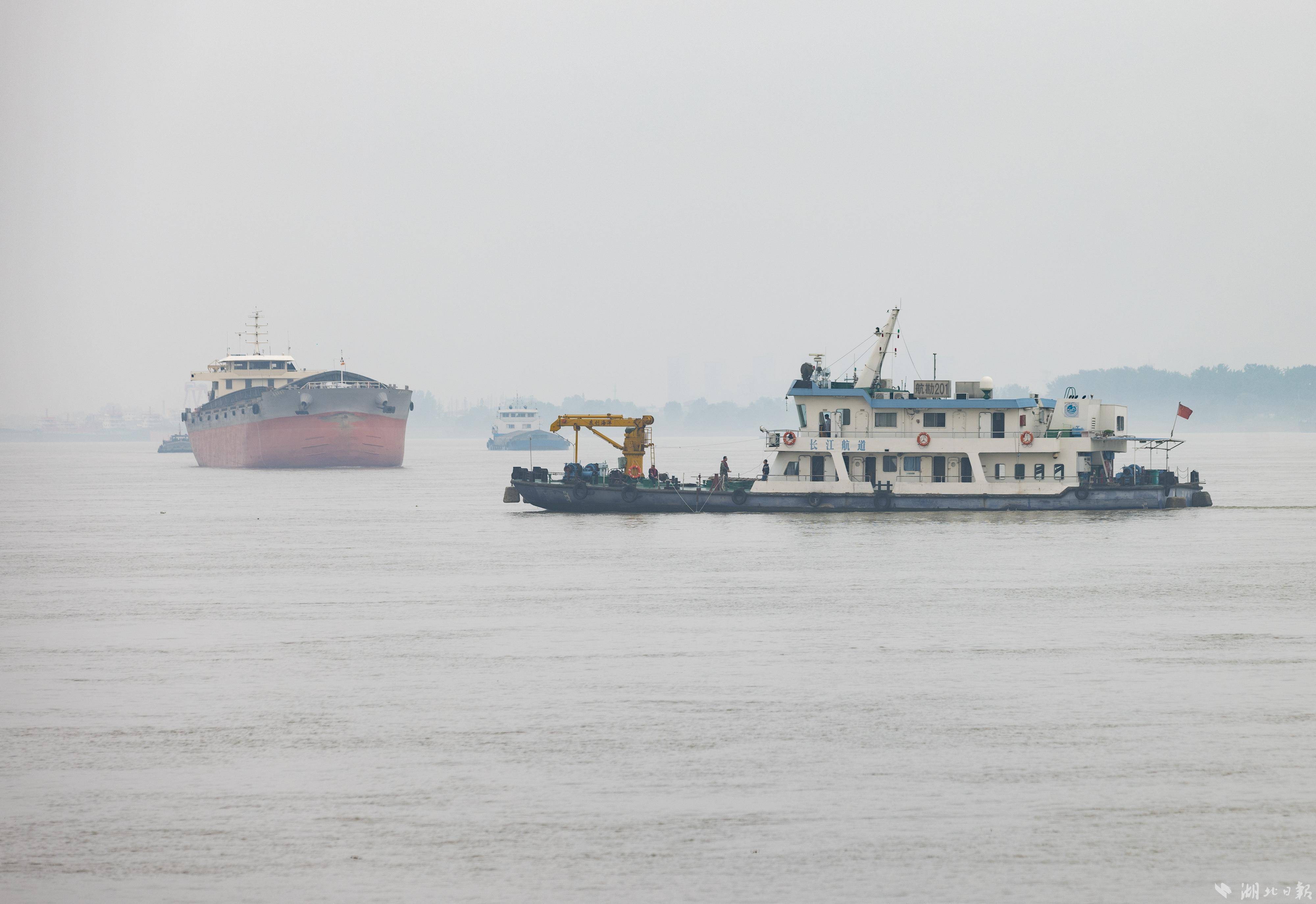 4月28日,测量船在长江鄂州段水域进行现场勘测。(湖北日报全媒记者 柯皓 摄)
