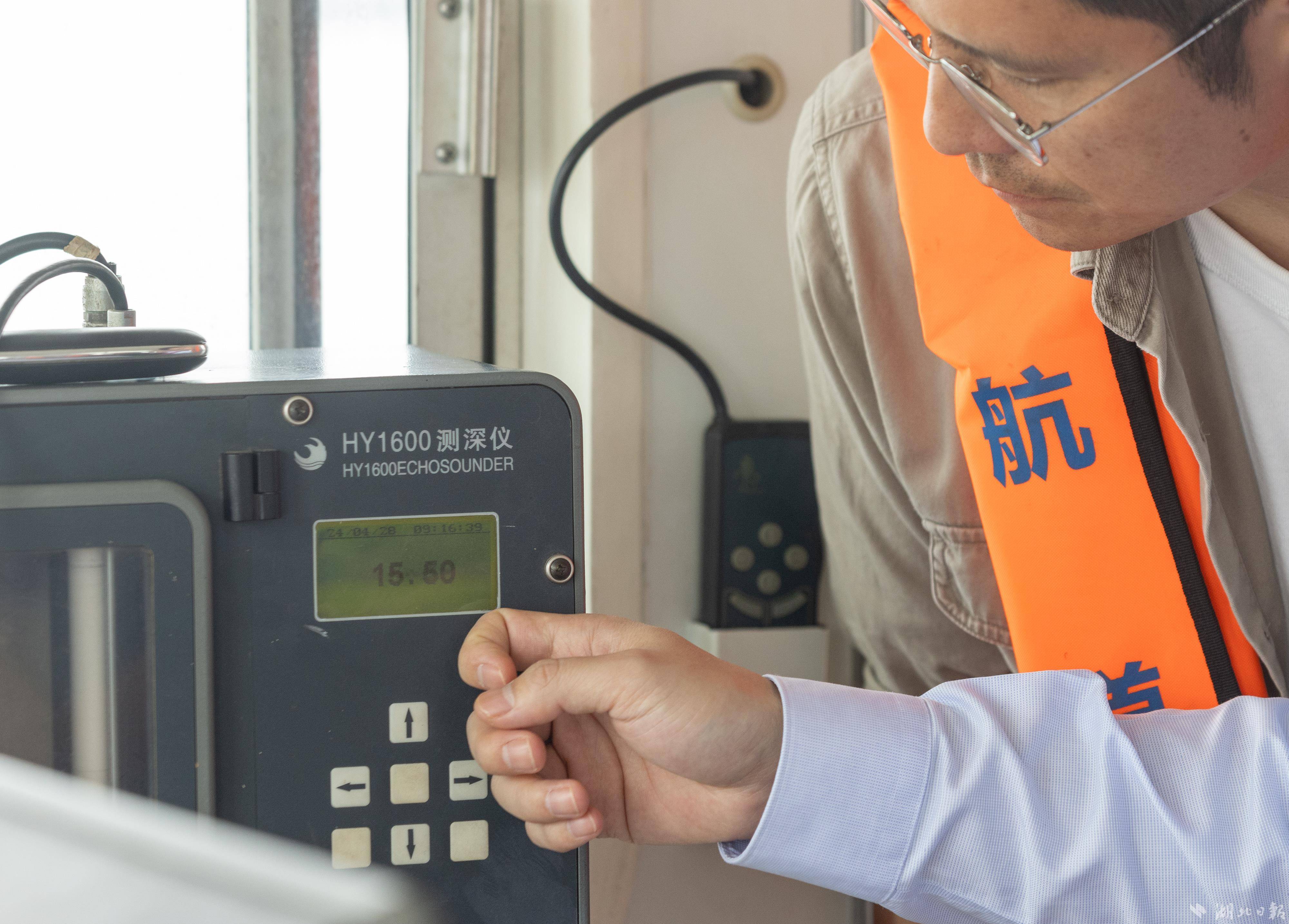4月28日,专家组对长江鄂州段水域航道进行探测。(湖北日报全媒记者 柯皓 摄)