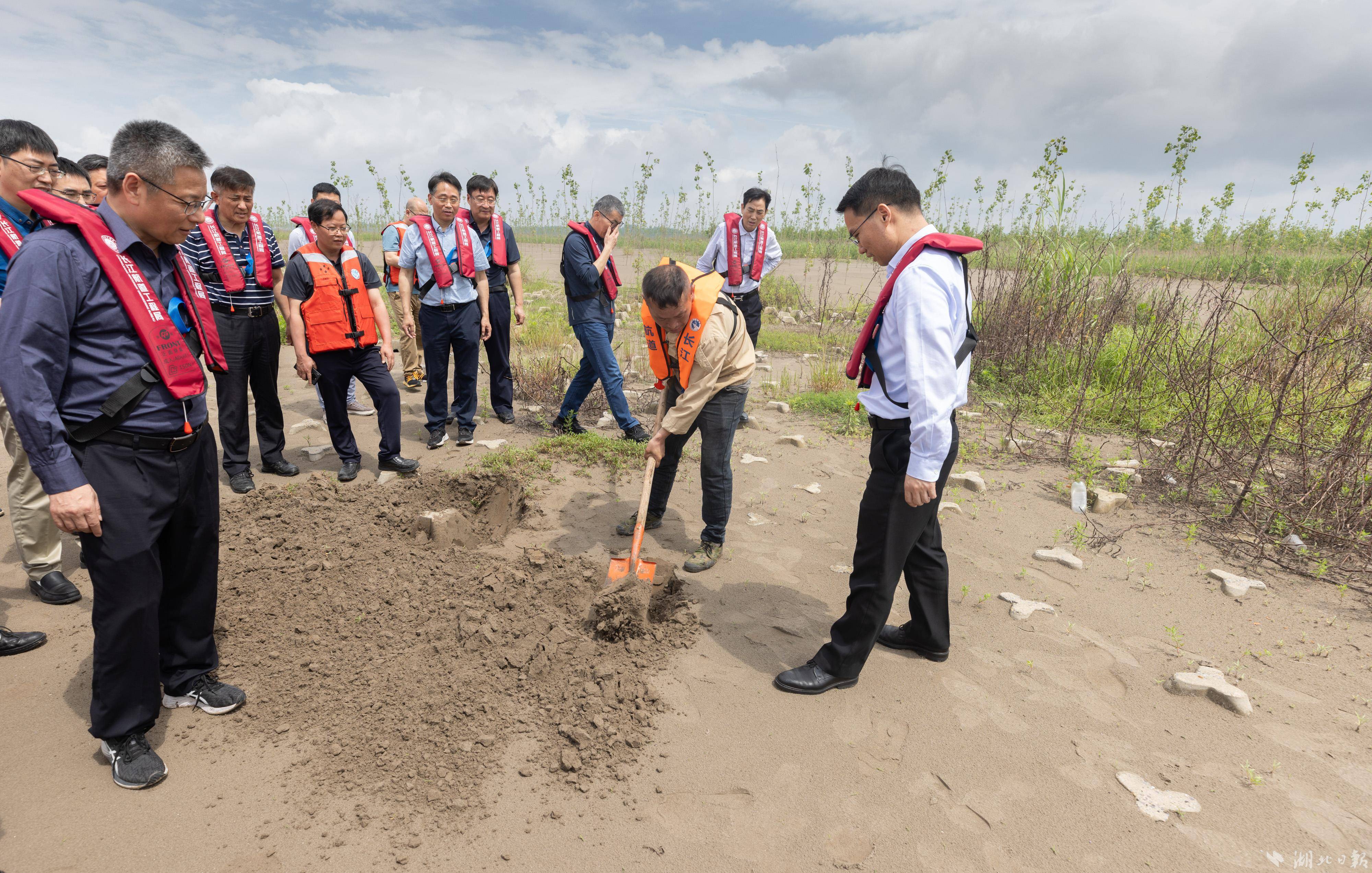 4月28日,专家组在戴家洲生态固滩工程进行现场踏勘。(湖北日报全媒记者 柯皓 摄)
