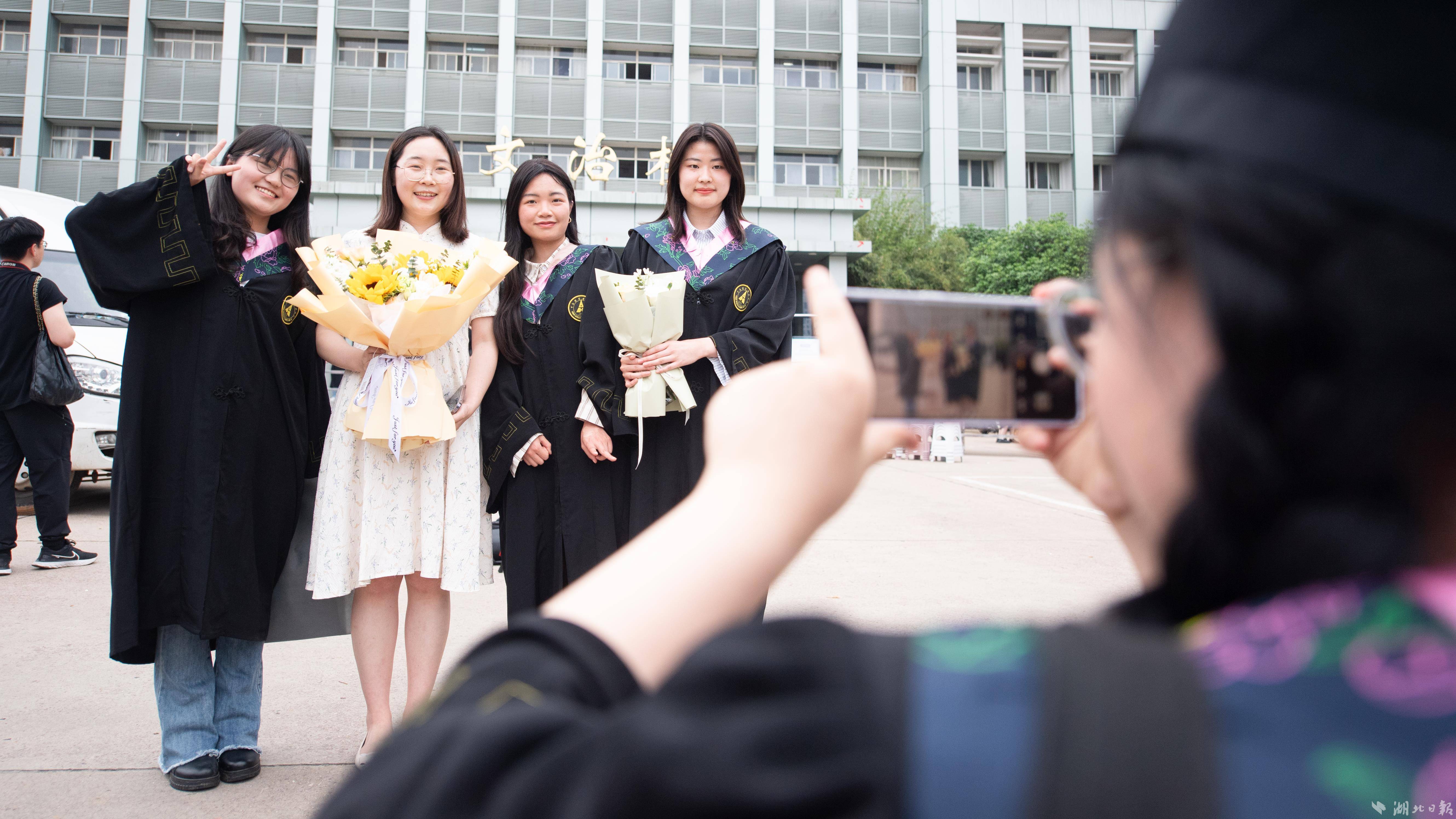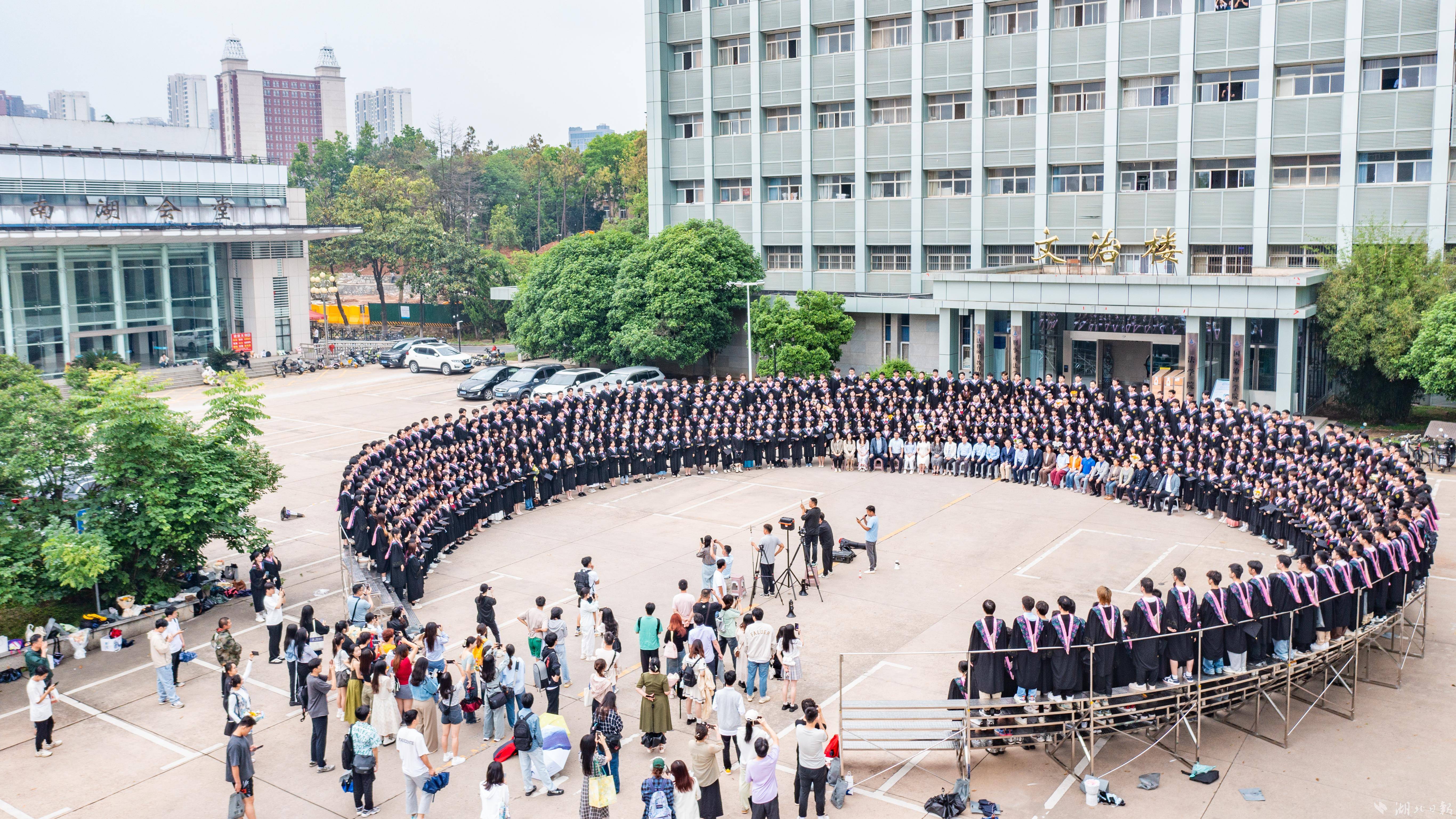 4月29日,在中南财经政法大学南湖校区文治楼前,来自该校法学院的近1000名本科毕业生身着学士服与老师和挚友拍下毕业合照。4月底以来,在汉高校陆续开启毕业季,一大批青年学生即将告别校园步入人生新阶段。(湖北日报全媒记者 何宇欣 通讯员 卓张鹏 摄)