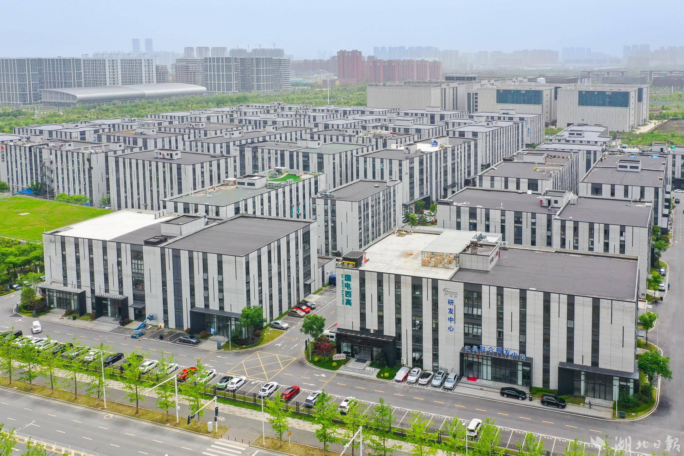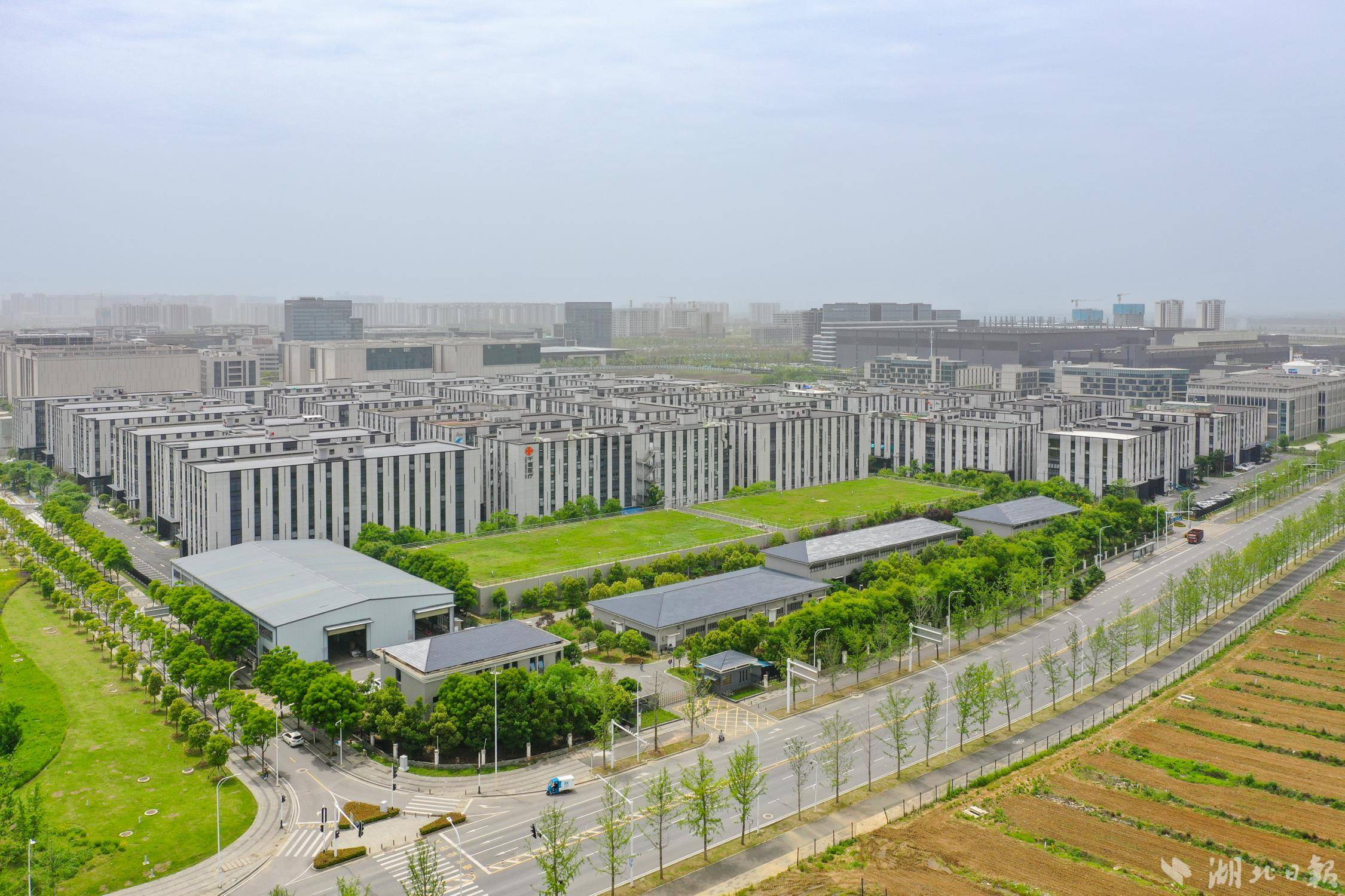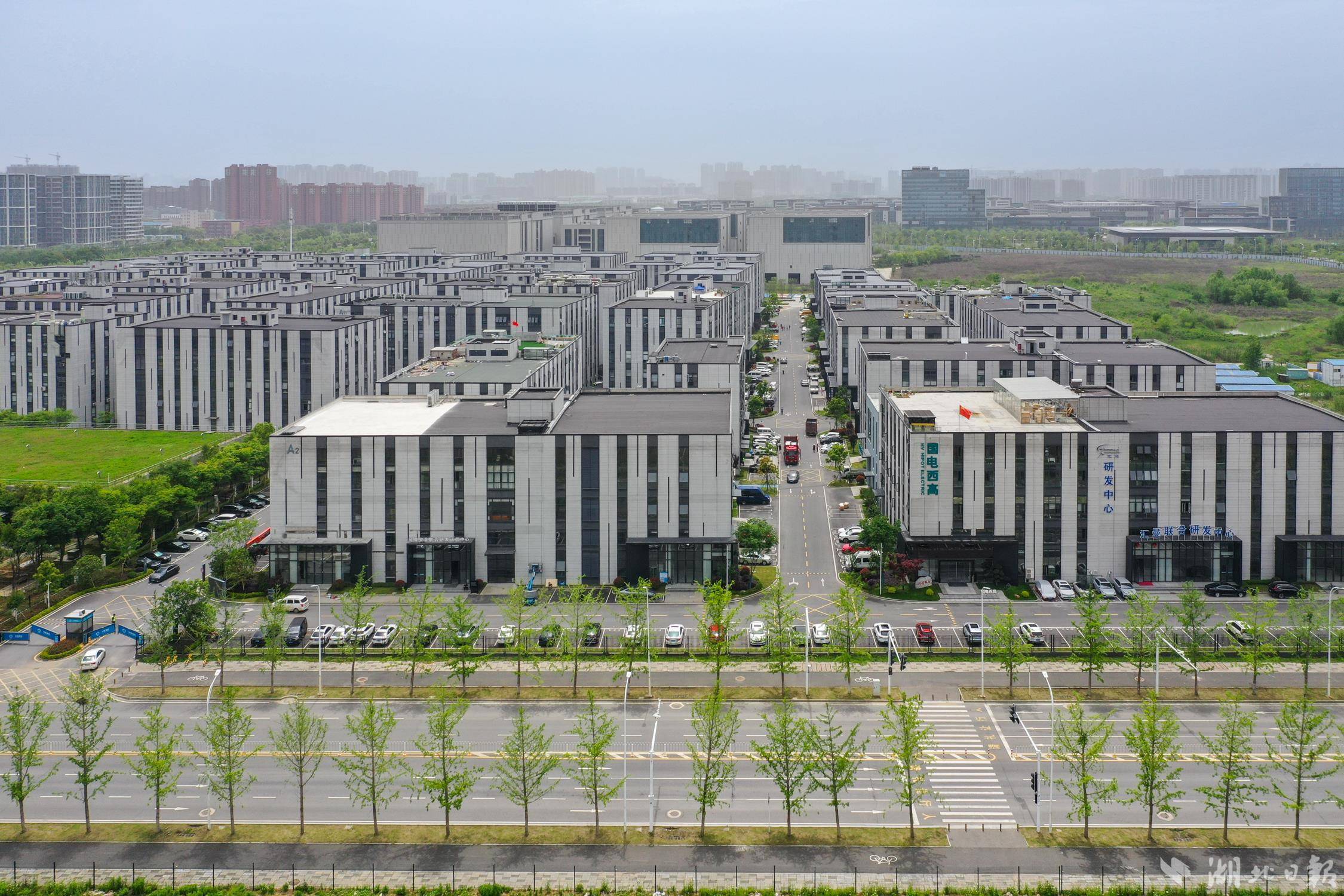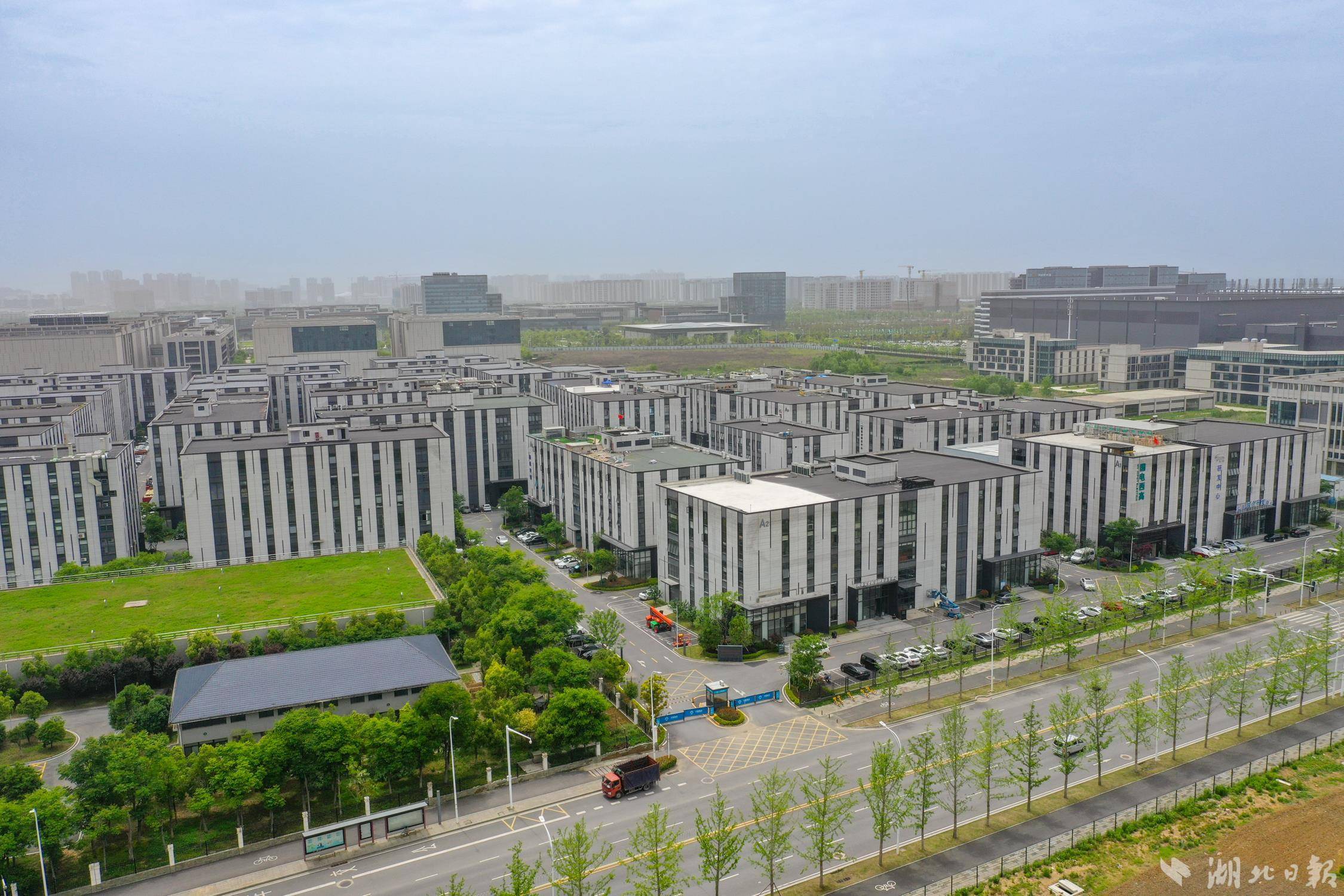 4月24日,航拍位于武汉市东西湖区国家网安基地的中南高科东西湖科创中心产业园,目前该园区入驻企业率已达97%。据介绍,中南高科东西湖科创中心产业园聚焦网络安全和大数据及数字经济相关产业,着力打造信息技术、智能制造、生命科学产业聚集地。目前,园区已形成“新一代信息技术”与“高端装备制造”两大产业集群,有110家企业签约入驻,近半企业为高新技术企业,去年实现产值约12亿元。下一步该创新中心将继续推动数字经济和实体经济的深度融合,推动片区经济提质增效。(湖北日报全媒记者 倪娜 通讯员 晏君 徐一帆 摄)