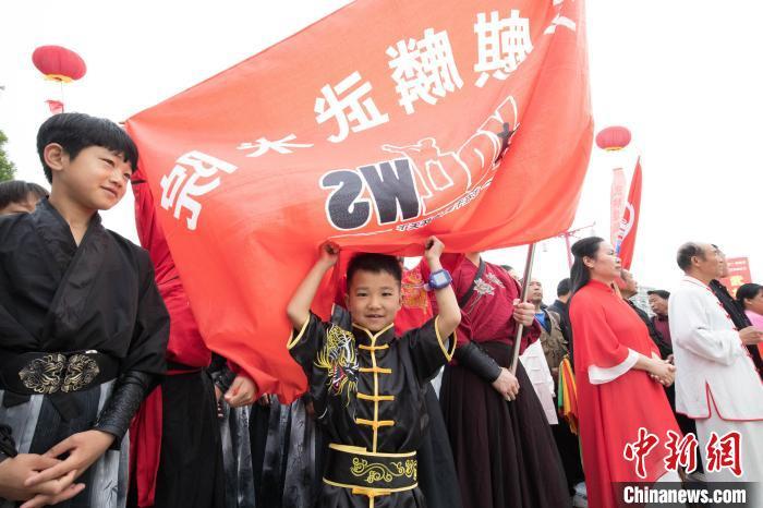 4月30日,开幕式现场,大名县玉麒麟武术院的小队员。张盼盼 摄