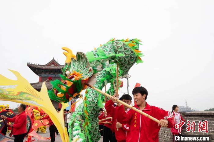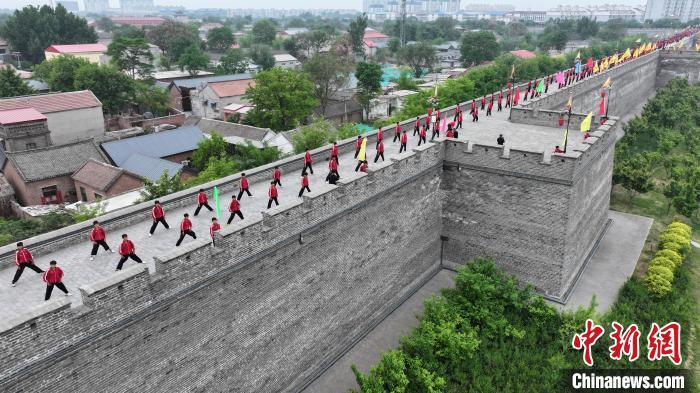 4月30日,大名县古城墙上,太极展演。张瑞林 摄
