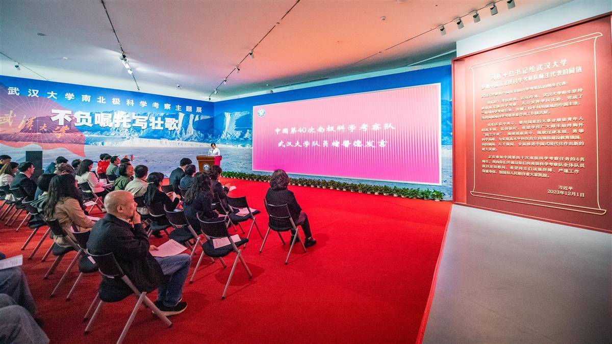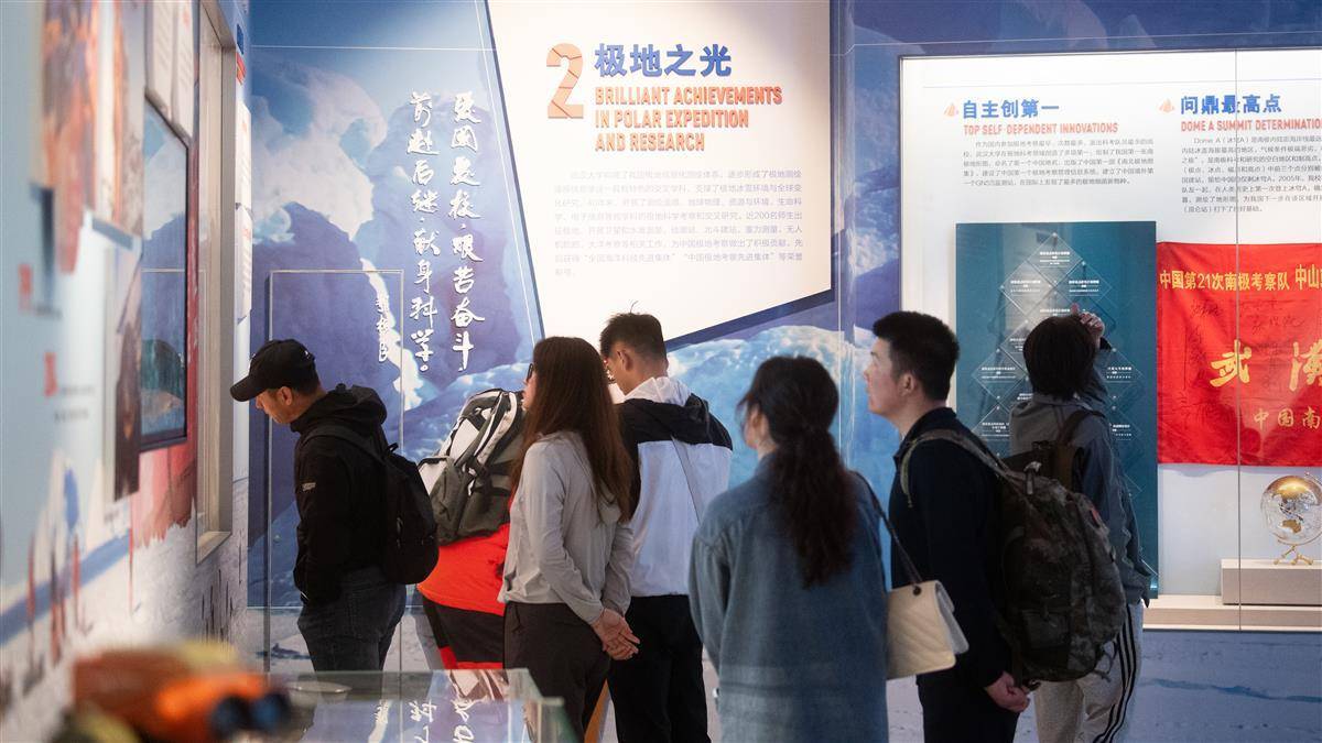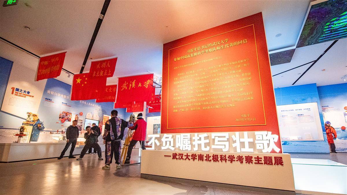 4月30日,“不负嘱托写壮歌——武汉大学南北极科学考察主题展”在武汉大学万林艺术博物馆开展。武汉大学自1984年首次参与中国南极科学考察以来,一直是我国极地科学研究的重要力量。本次展览分为“国之大者”“极地之光”“中国主张”“冰雪探秘”四个部分,用98件科考实物,98件极地标本,勾勒出武汉大学极地科考的四十年历程和重要贡献。(湖北日报全媒记者 何宇欣 摄)