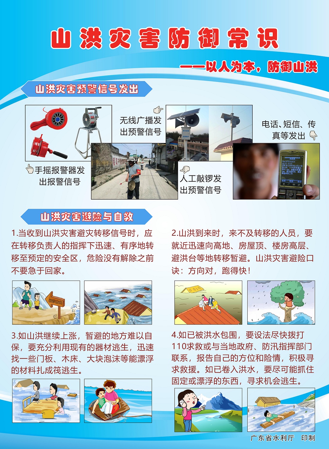 五一假期即将到来,广东省水利厅提醒,广大市民请密切留意气象水文预警,避免靠近江河水库边游玩。如遇突发暴雨洪水,请牢记防洪顺口溜:暴雨来,莫慌张,高处转移要迅速;靠左右,两边走,远离旋涡与水坑。洪水来,快上岸,千万不要抓电杆;困水中,不要急,拴牢大树或浮具。处险境,想办法,床板门板扎木筏;备食物,穿暖衣,保存体力待救援。照电筒,吹哨子,求救信号不停发;人来救,己自救,防灾避险保平安。