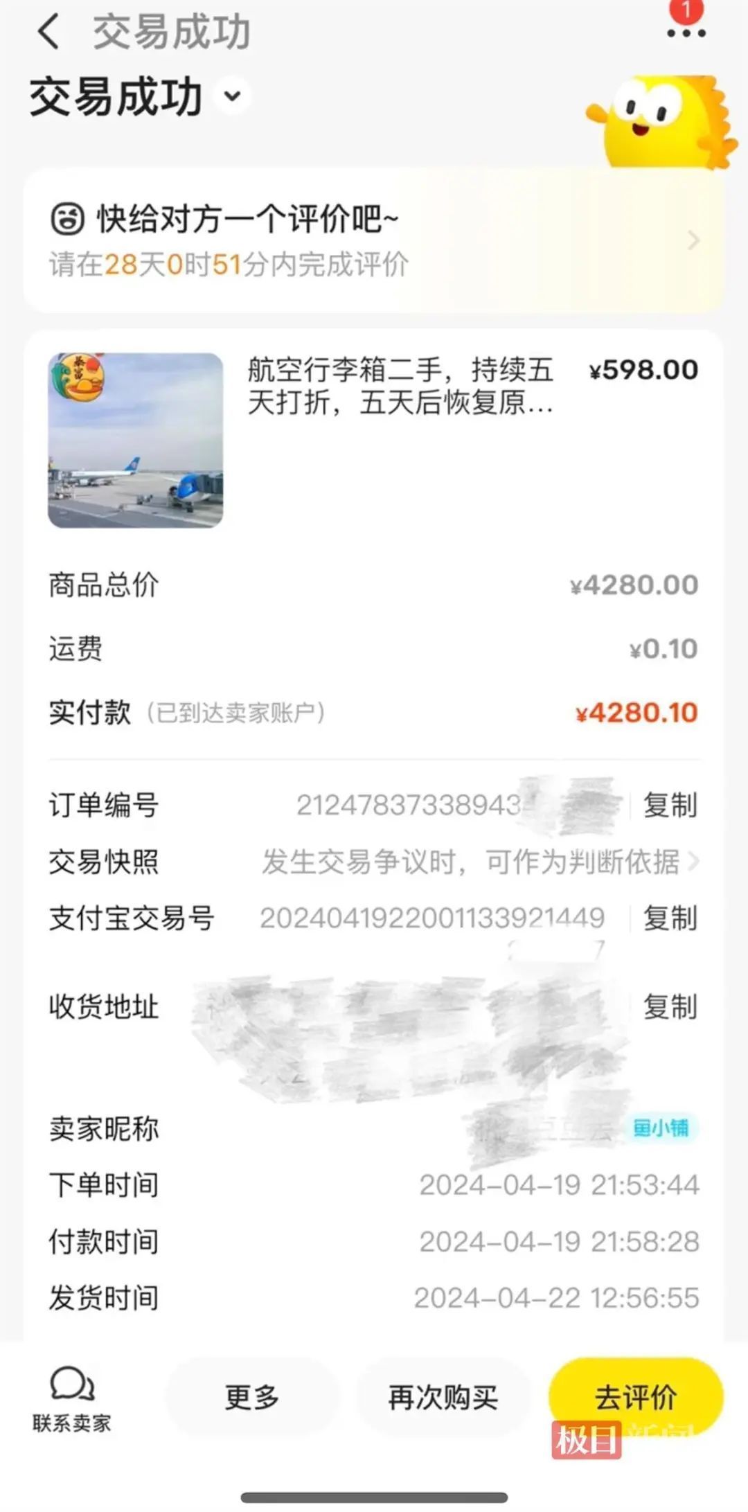 4月30日下午,记者联系上了当事博主,他向记者讲述了事情的具体情况。该博主表示,他做的视频内容多数与盲盒相关,前不久他浏览某二手交易平台时,偶然发现有商家在售卖常州国际机场的无主行李箱盲盒。他与对方沟通时,对方声称自己以前是一名空姐,目前转岗做了内勤,当时他相信了对方的身份,决定购买两个行李箱盲盒并制作一期视频满足网友的好奇心。