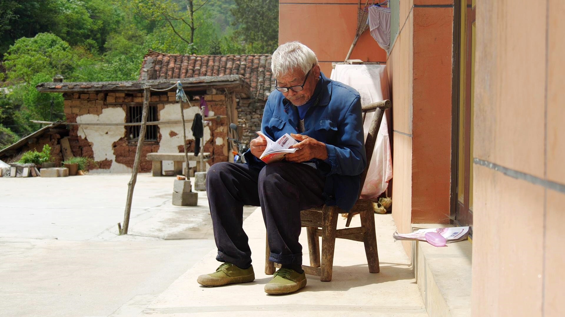 笔者来到老人家中时,老人戴着眼镜正在看书,问起修墙的事,贾永信的家人告诉笔者。