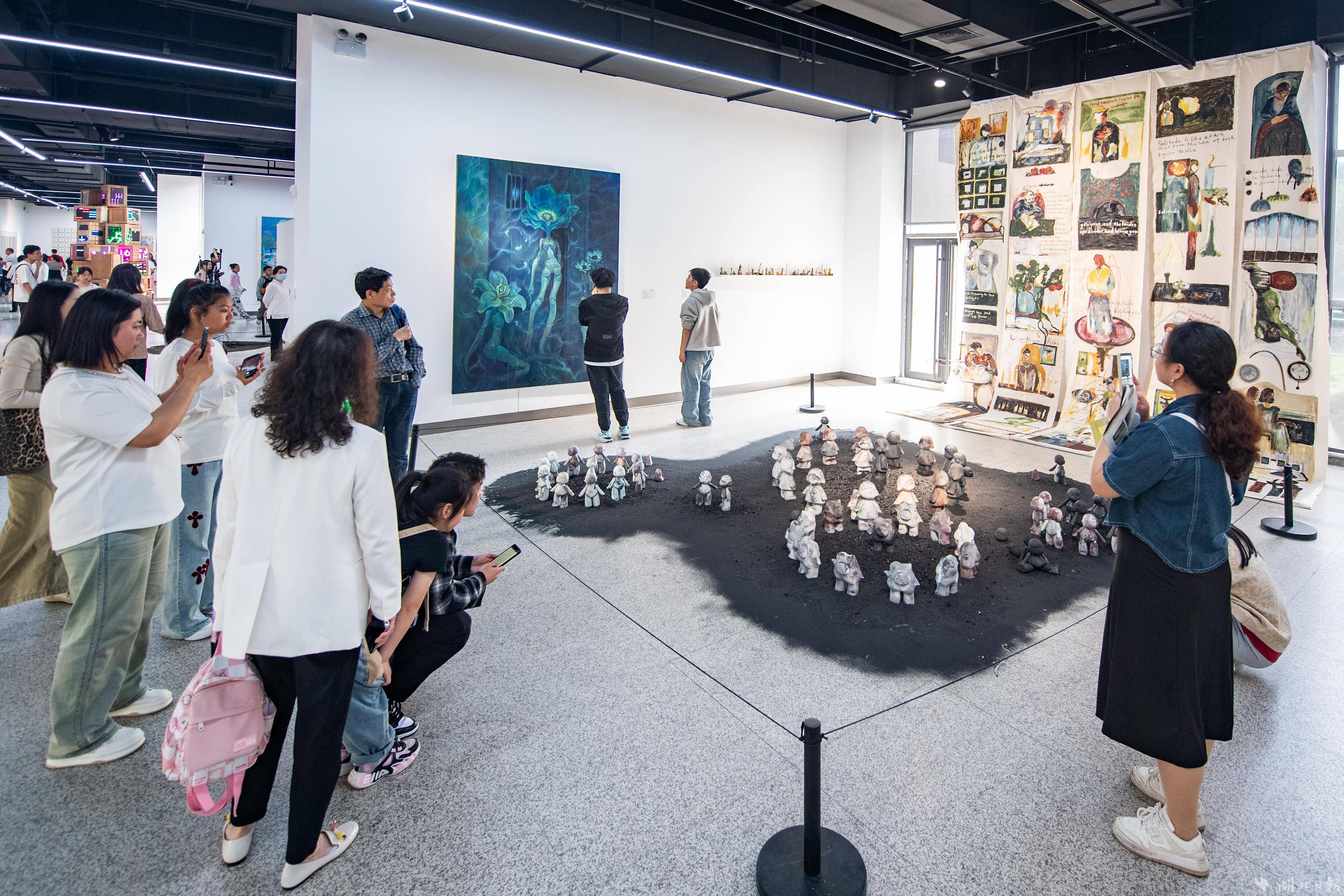 2024年5月2日,五一小长假第二天,湖北美术馆内人流如织,大批游客前来看展。五一假期,生成——2024湖北美术学院毕业季·研究生毕业作品展、晷时印迹——周吉荣艺术展等一批最新展览向游客开放,让游客感受浓浓艺术氛围。(湖北日报全媒记者何宇欣 通讯员符坚 摄)