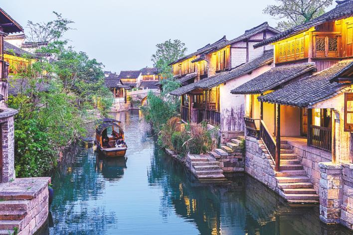 4月26日,嘉兴市桐乡市濮院时尚古镇,游客游览江南水乡的迷人夜景。