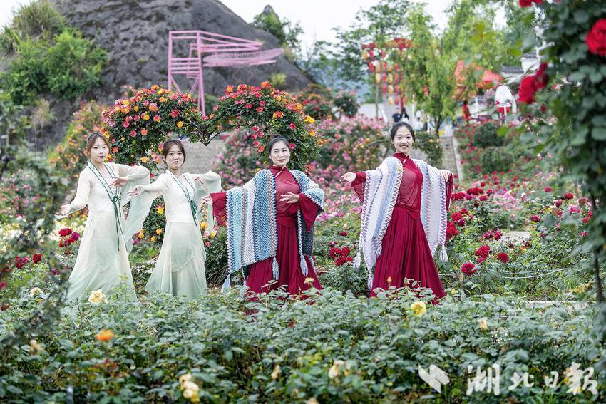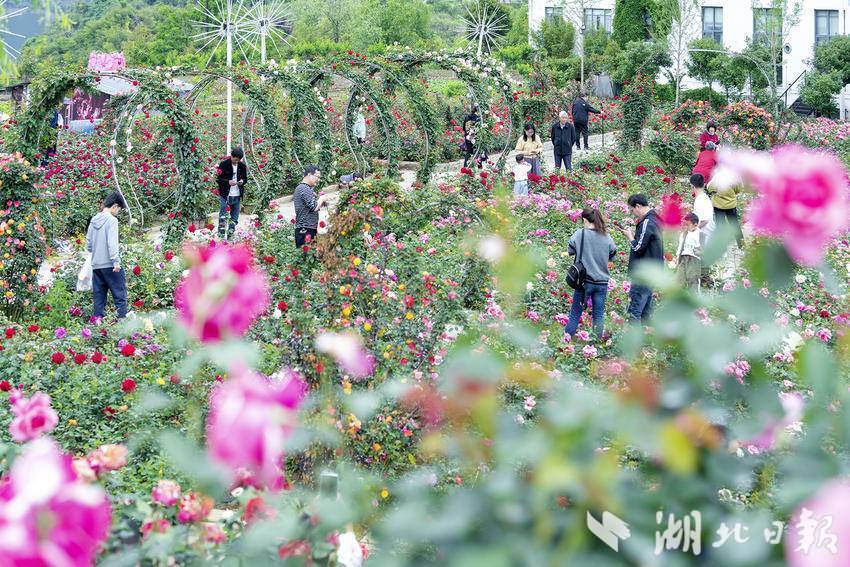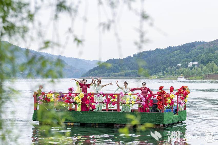 5月2日,竹山县圣水湖景区内数万株玫瑰、月季等鲜花竞相开放,争奇斗艳,形成了一片花的海洋,吸引了众多游客驻足观赏。在波光粼粼、微风拂面的圣水湖上,游客们乘坐游船、快艇穿梭于湖面上,感受着湖水的清凉和湖风的轻拂。景区组织的一个个互动演出节目让游客们目不暇接,时刻都沉浸在欢乐和喜庆的节日氛围中。“竹山桃花源街区开街游客猛增,带动我们景区也迎来了大客流,这两天景区平均客流量都在5万人次。”景区负责人李德琴介绍道。