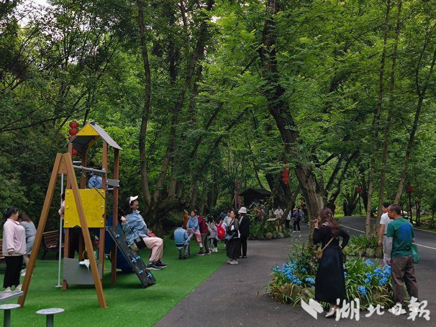 在竹山太和梅花谷,来自陕西、河南、武汉、十堰等地游客,要么徜徉在绿色森林里、要么在桃园打卡照相,要么乘玩游艇,要么开机直播,要么在酒吧听歌、喝咖啡,要么选购景区内各种小饰品。潺潺溪水、鸟语花香,让各地游客流连忘返,景区每天接待游客5000人次以上。