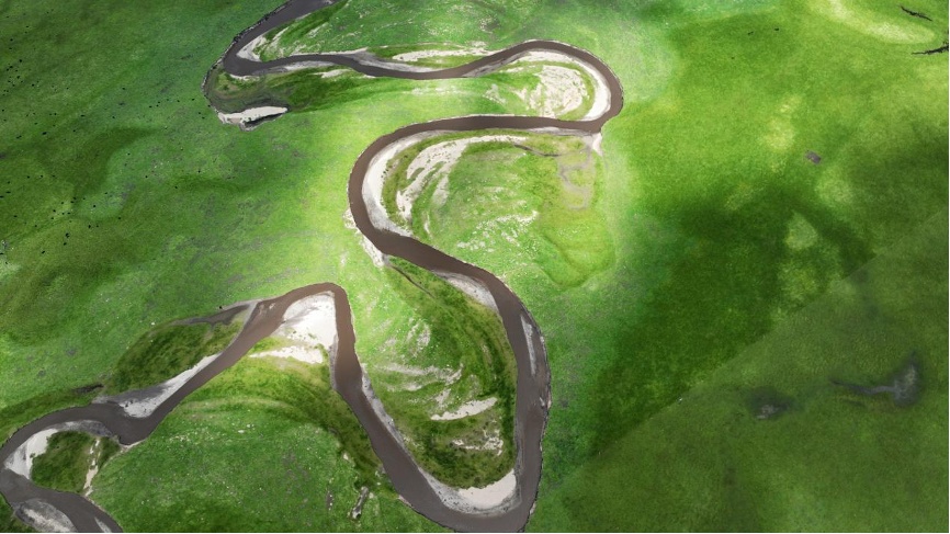 甘肃省甘南藏族自治州玛曲县阿万仓湿地景色(无人机照片)。新华社记者 陈斌 摄