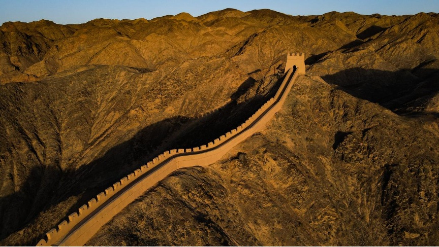甘肃省嘉峪关市拍摄的悬壁长城(无人机照片)。新华社记者 陈钟昊 摄