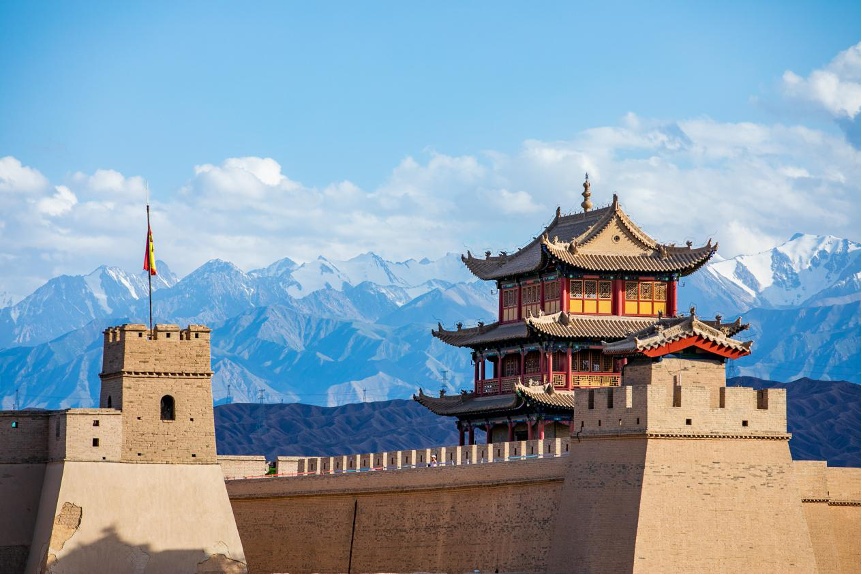 祁连雪山与嘉峪关关城。新华社记者 郎兵兵 摄