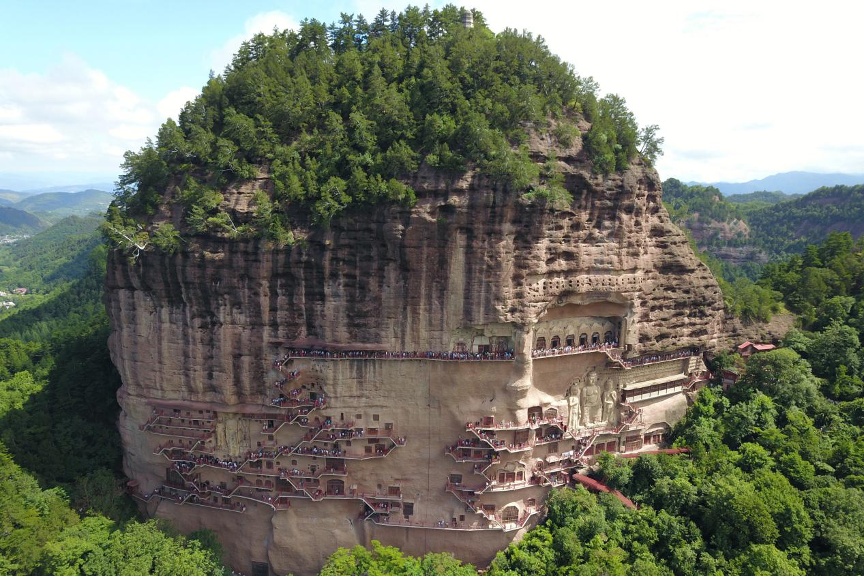 麦积山石窟(无人机照片)。新华社记者 范培珅 摄