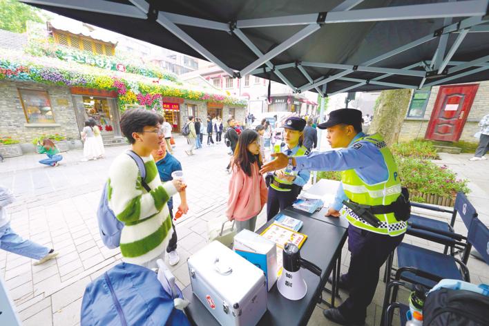 5月1日,武汉市公安局武昌区分局在昙华林景区增设“移动警务室”,确保节日秩序和游客安全。 (湖北日报全媒记者 魏铼 通讯员 应后威 孙逊 摄)