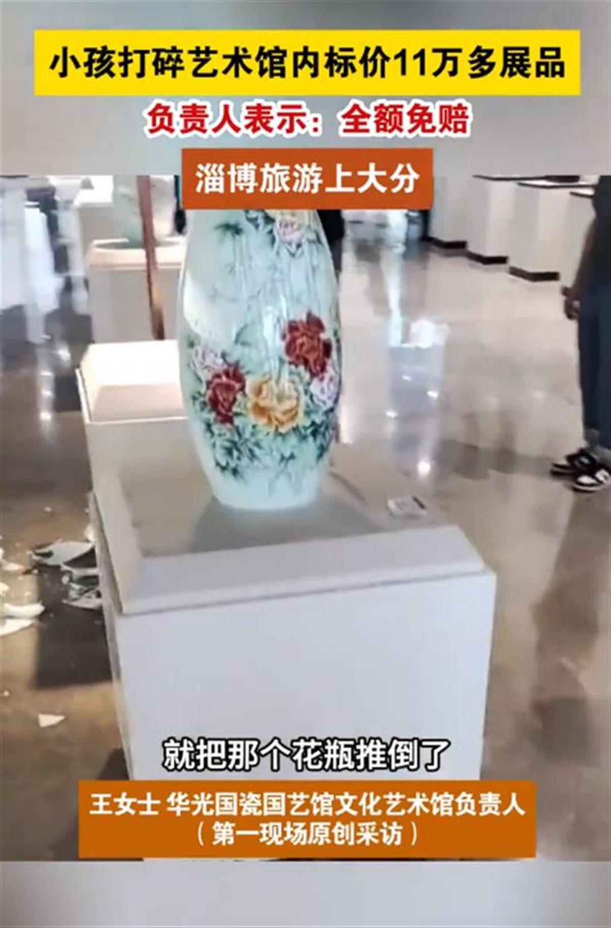事情经过就是这样的,这个国艺馆应该是属于华光国瓷的一个对外展示窗口,当天由于游客较多,企业在展品的维护上也有疏忽,发生花瓶被撞倒破碎的意外后,没要孩子赔偿。无论这个损坏的责任该如何划分,企业在事后承担了全部的损失,这个态度确实是值得肯定。
