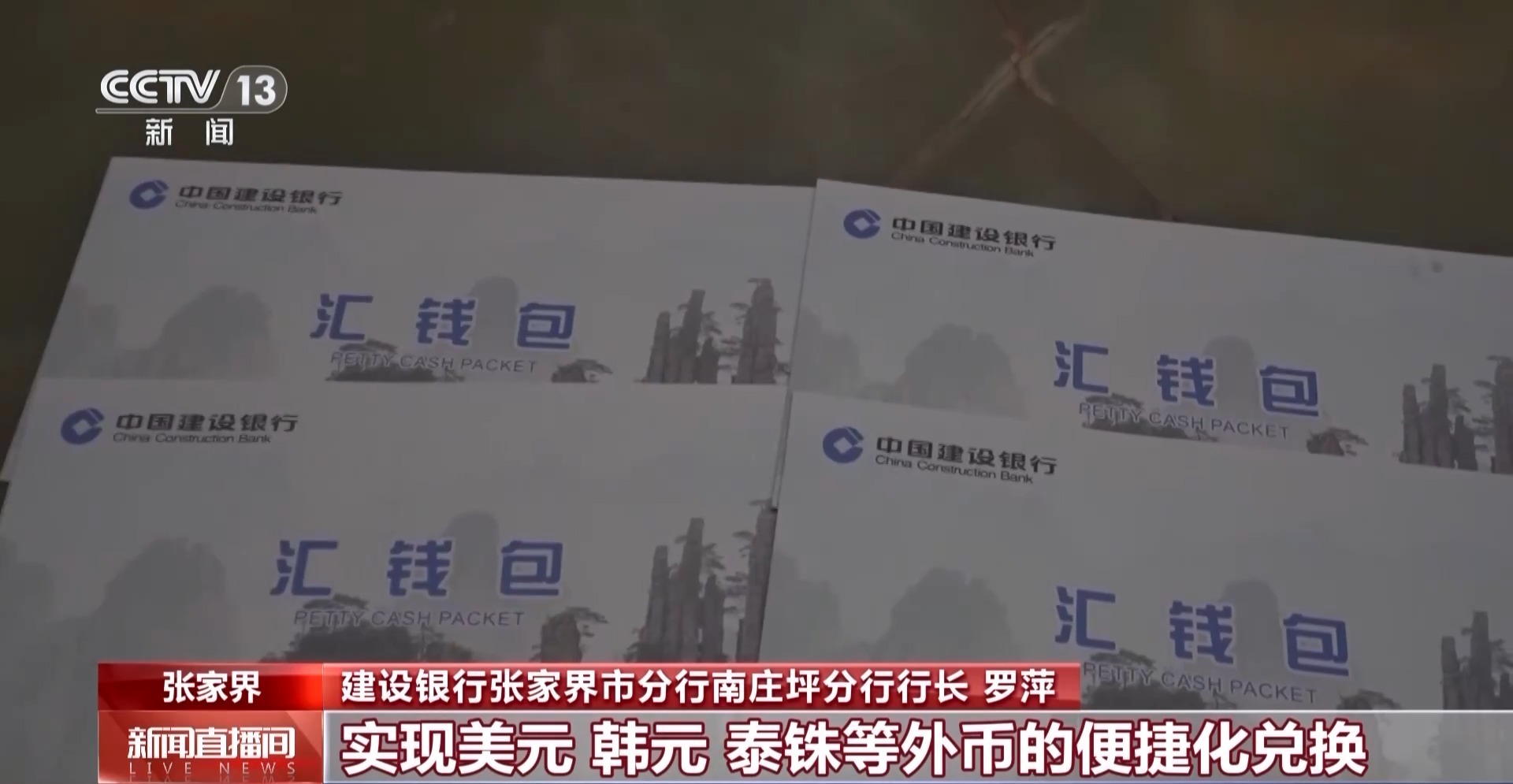 建设银行张家界市分行南庄坪分行行长 罗萍:“汇钱包”业务是湖南省外汇管理局在张家界市创新推出的入境旅游服务,实现美元、韩元、泰铢等外币的便捷化兑换。